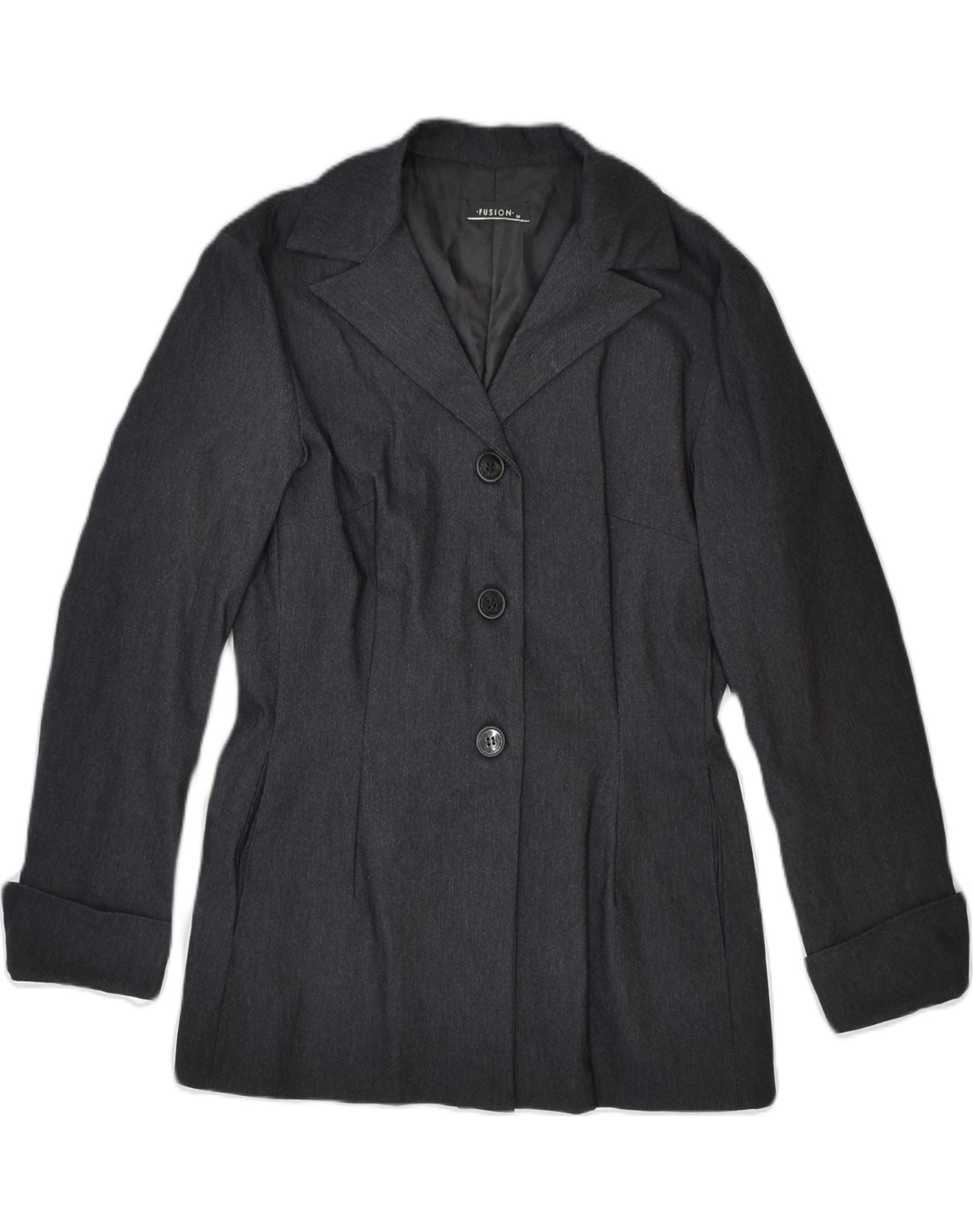 Giacca blazer a 3 bottoni da donna VINTAGE UK 12 media nera in poliammide
