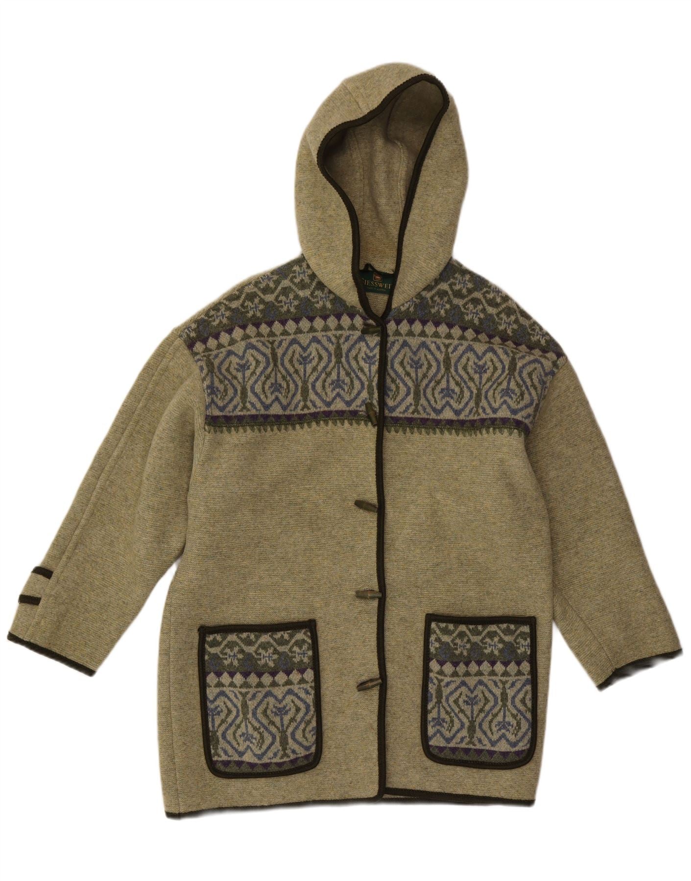 Home > Da donna > Abbigliamento Depop > GIESSWEIN Maglione cardigan con cappuccio da donna UK 14 Large Green Fair Isle