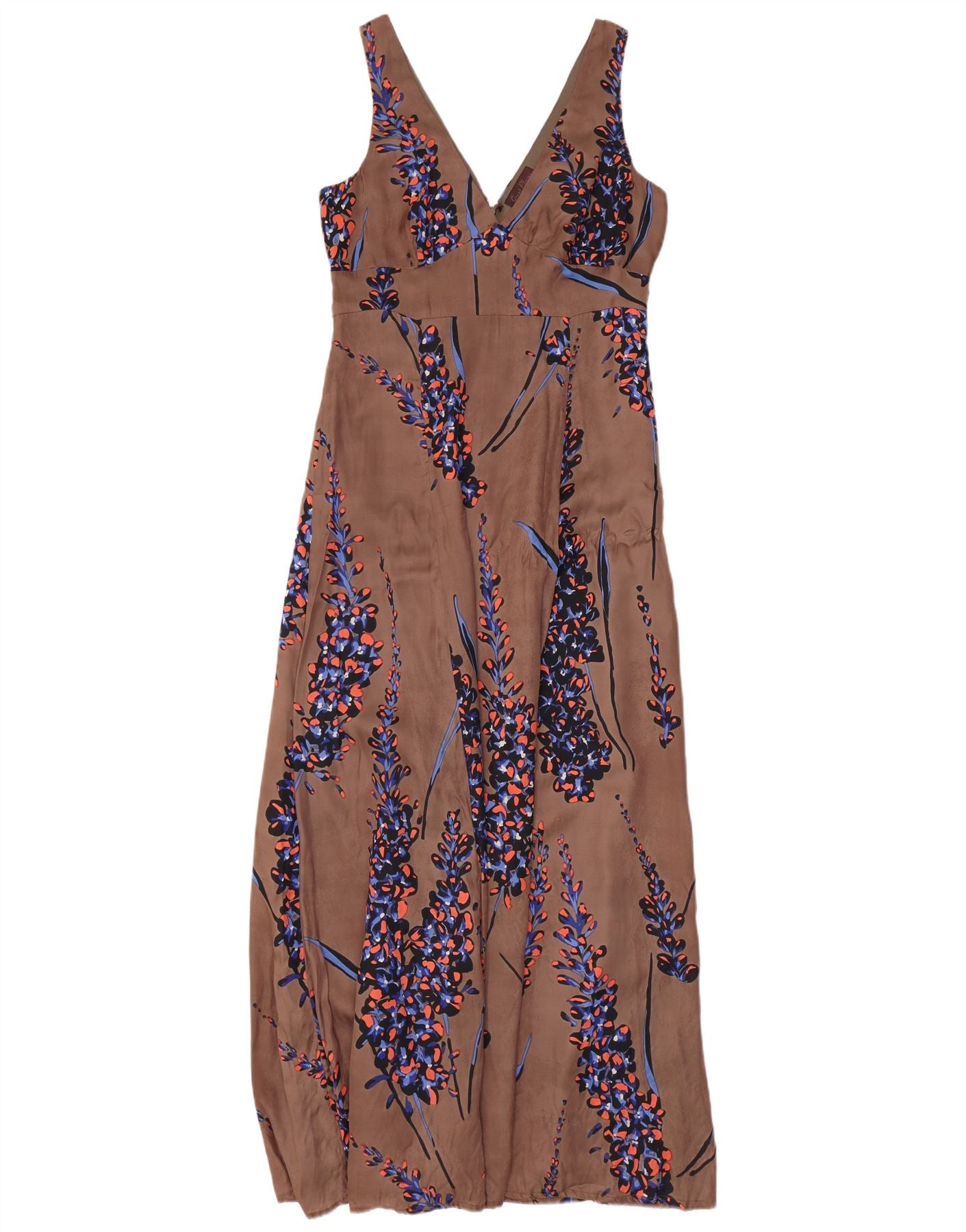 GREAT PLAINS Abito lungo senza maniche da donna UK 12 Rayon floreale marrone medio