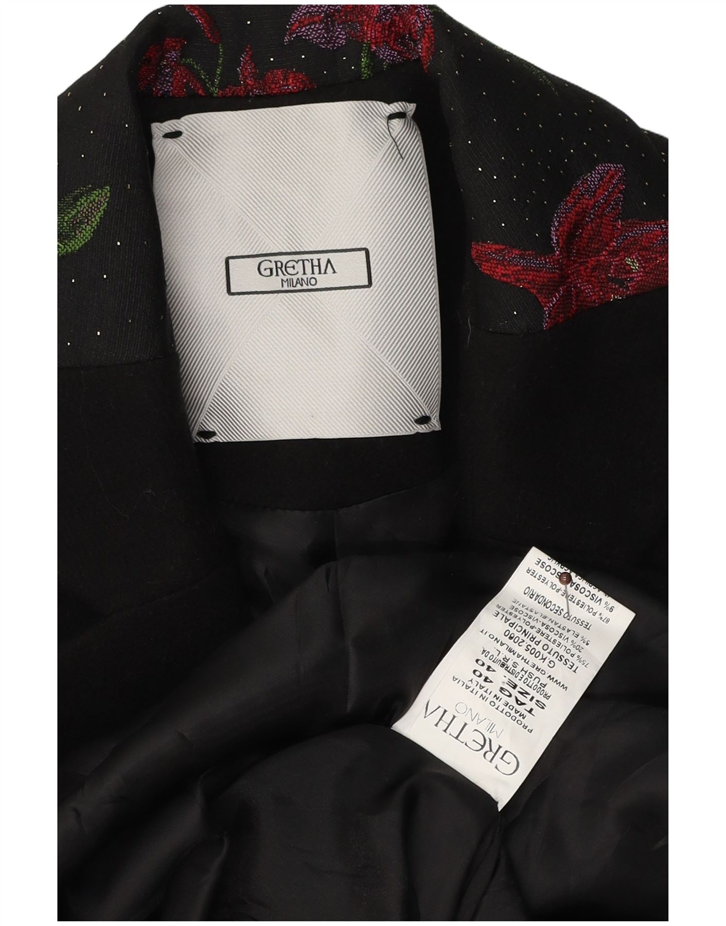 Soprabito oversize da donna Gretha Milano IT 40 piccolo poliestere floreale nero