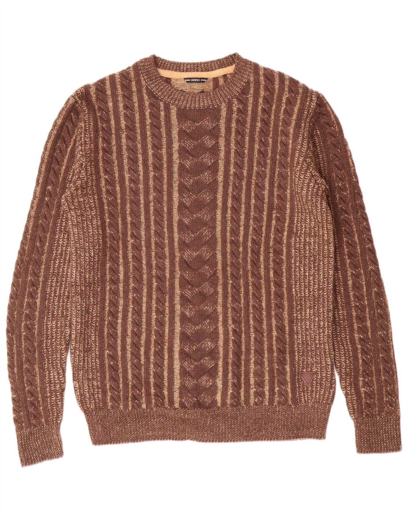 GUESS Maglione Uomo Girocollo Maglione Piccolo Marrone Poliammide