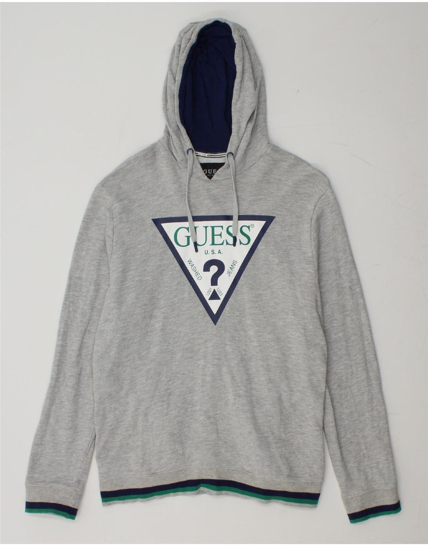 GUESS Felpa con cappuccio grafica da uomo grande in cotone grigio