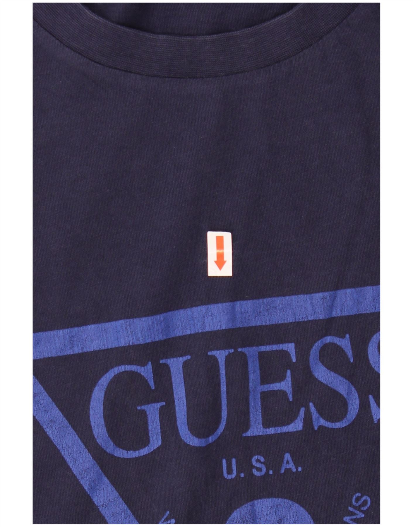 T-shirt grafica da uomo GUESS Top Large in cotone blu navy