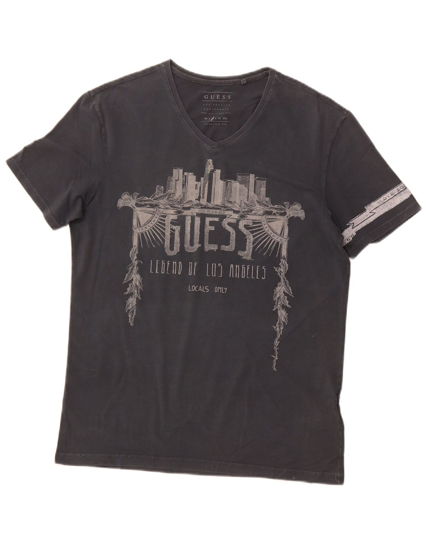 GUESS T-shirt grafica extra slim da uomo Los Angeles Top in cotone grigio medio