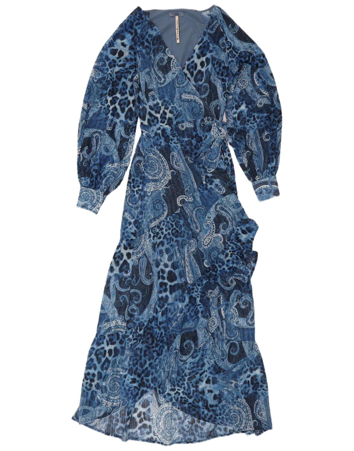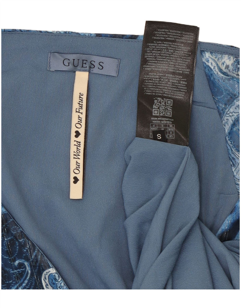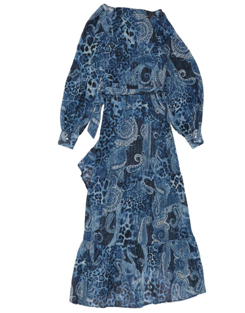 GUESS Abito a portafoglio asimmetrico da donna UK 10 Piccolo poliestere Paisley blu