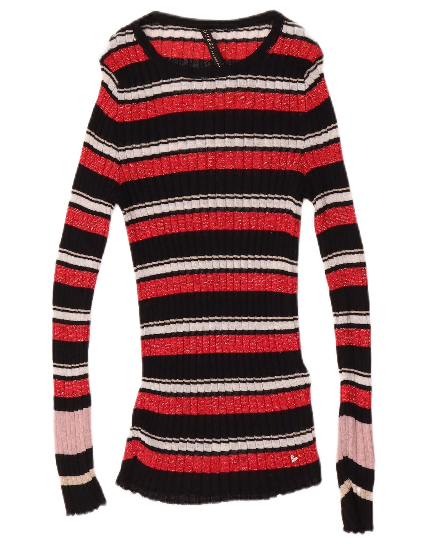 GUESS Womens Boat Neck Jumper Sweater UK 12 Medium Multicoloured Striped