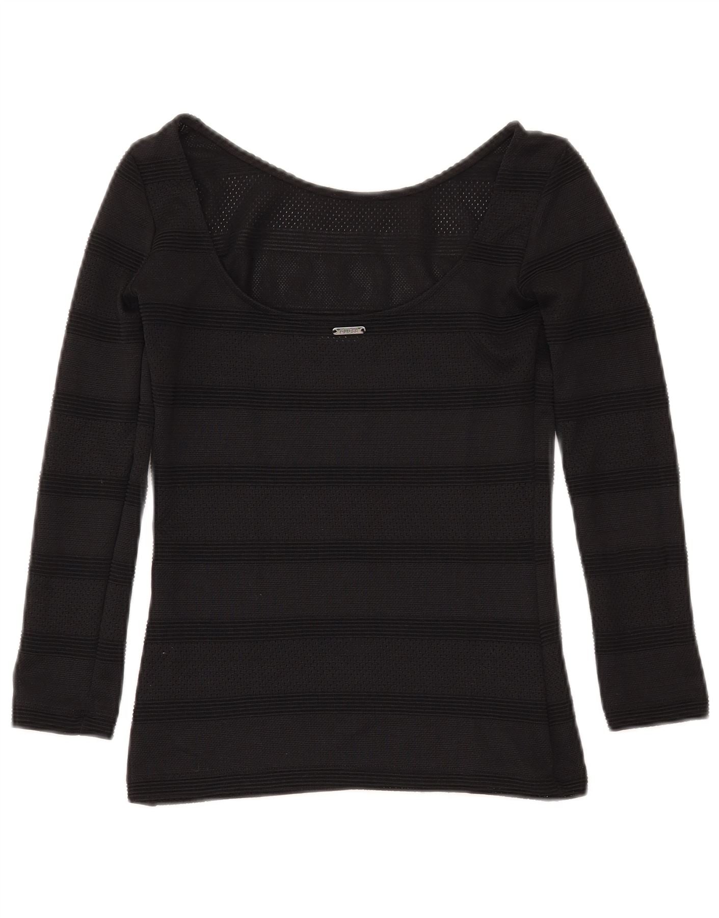 GUESS Maglione corto da donna con scollo a barca UK 4 XS Nero a righe
