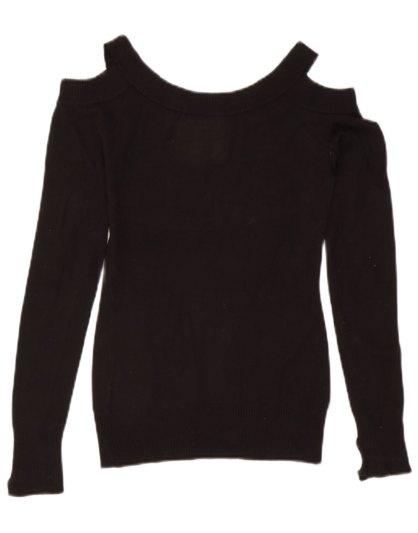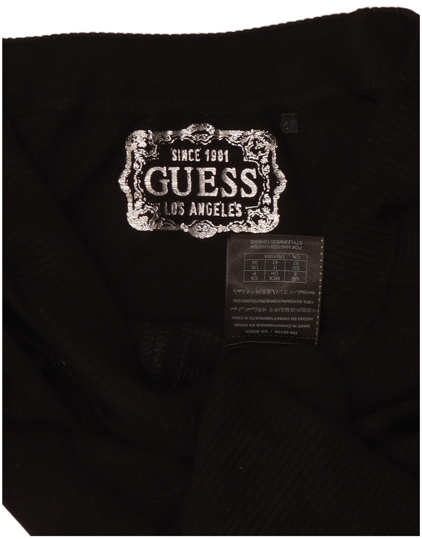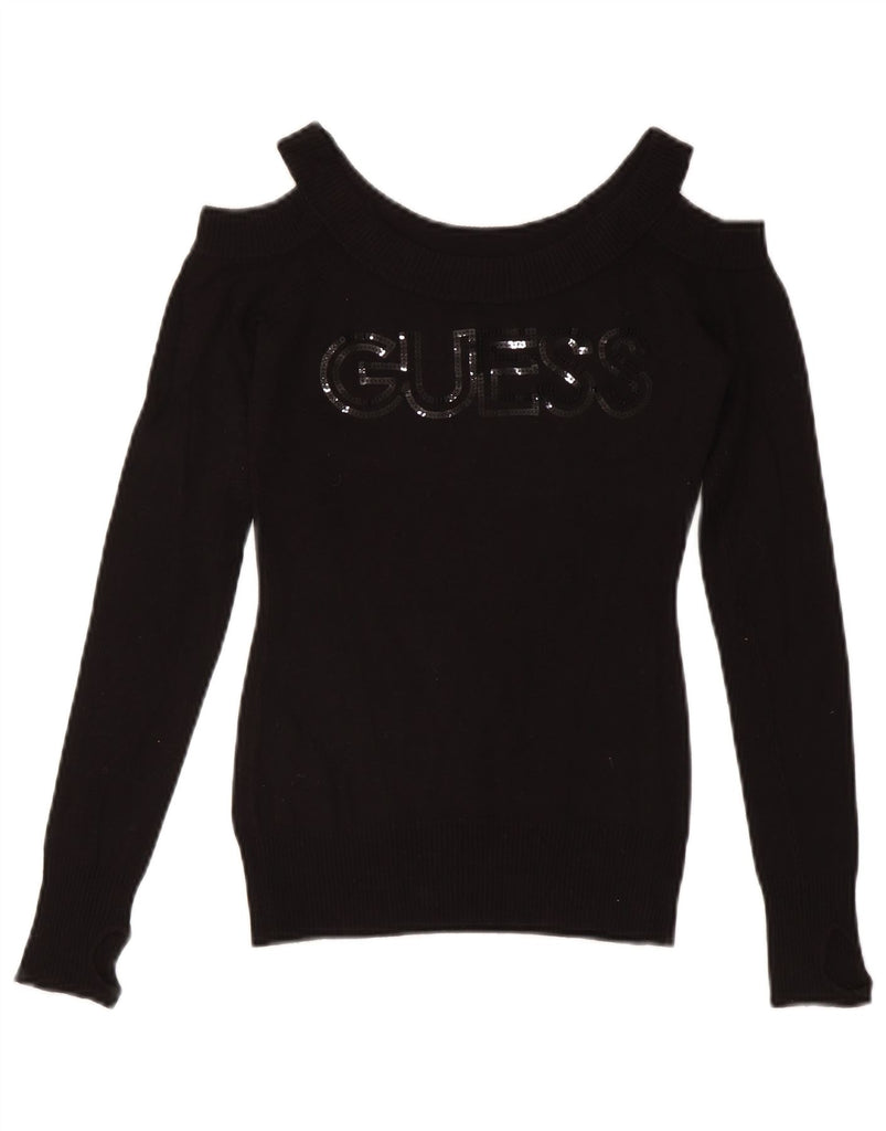 GUESS maglione da donna con scollo a barca con grafica UK 8 piccolo nero