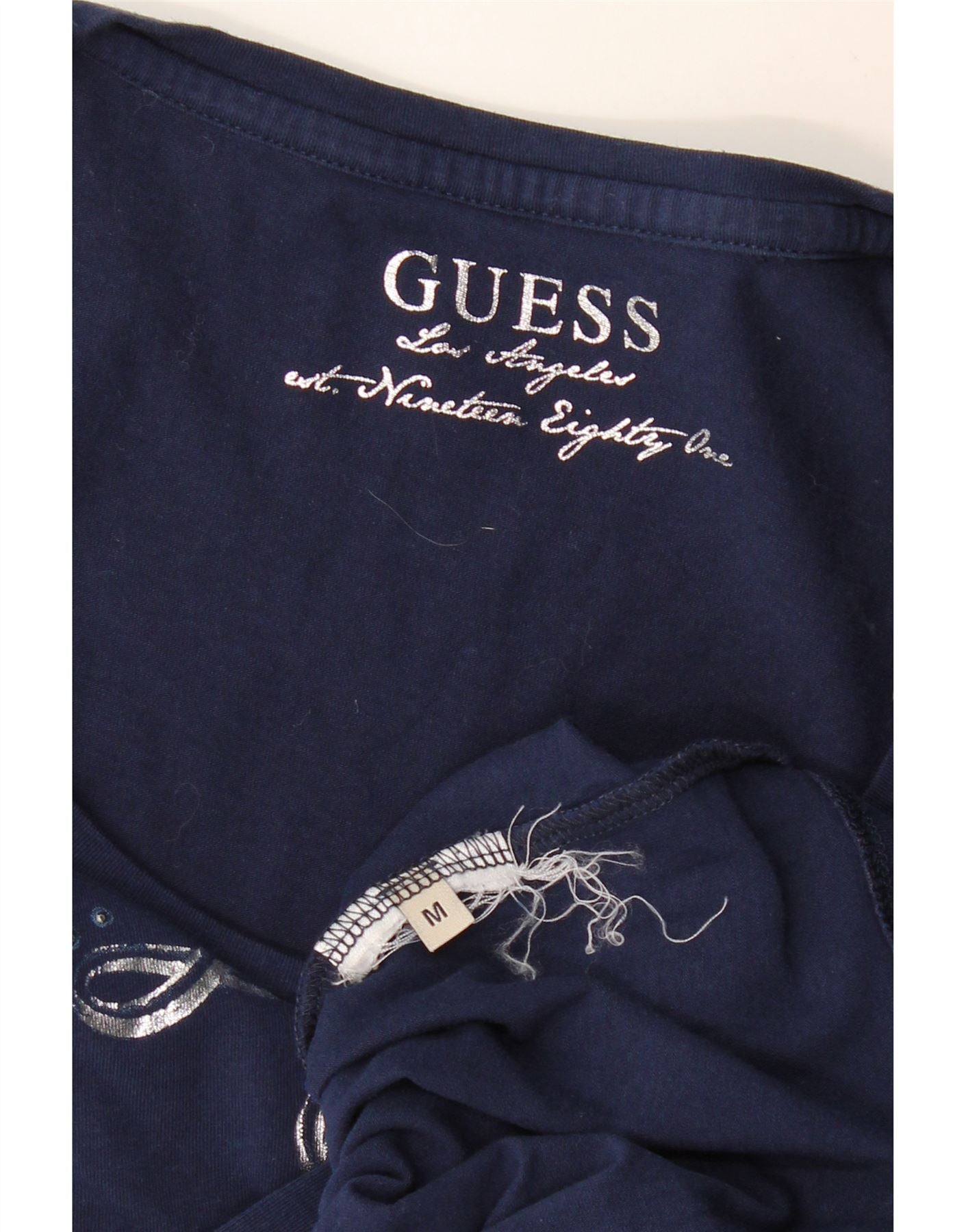 Guess T-shirt grafica da donna Top UK 12 Medium Blu Navy