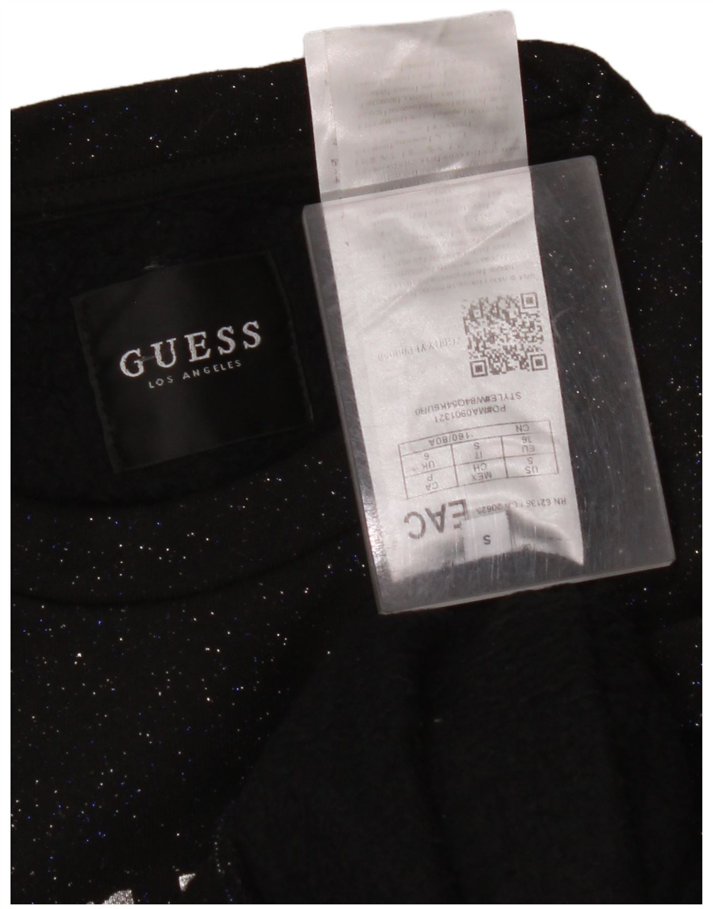 GUESS Donna Felpa Corta Oversize Maglione UK 10 Piccola Nera Macchiata