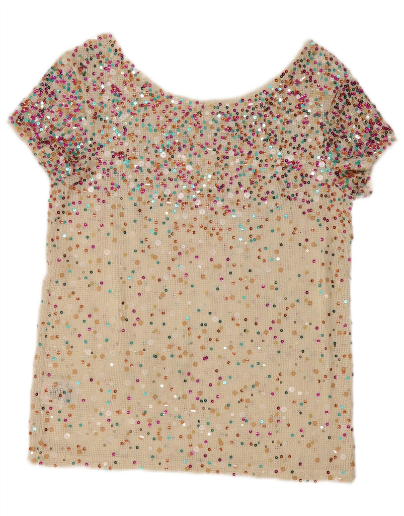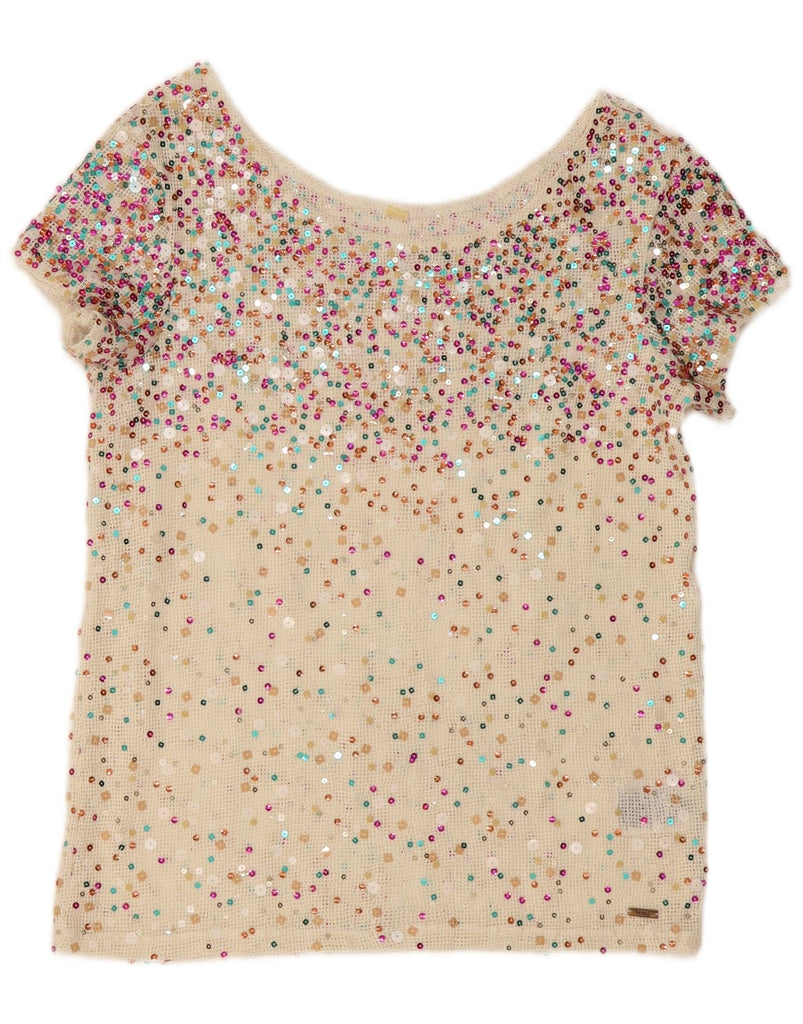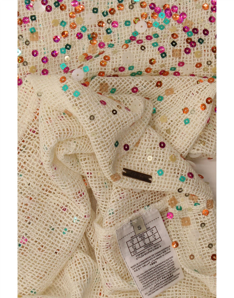 GUESS Camicetta da donna all'uncinetto con paillettes Top UK 10 Small Poliestere bianco sporco