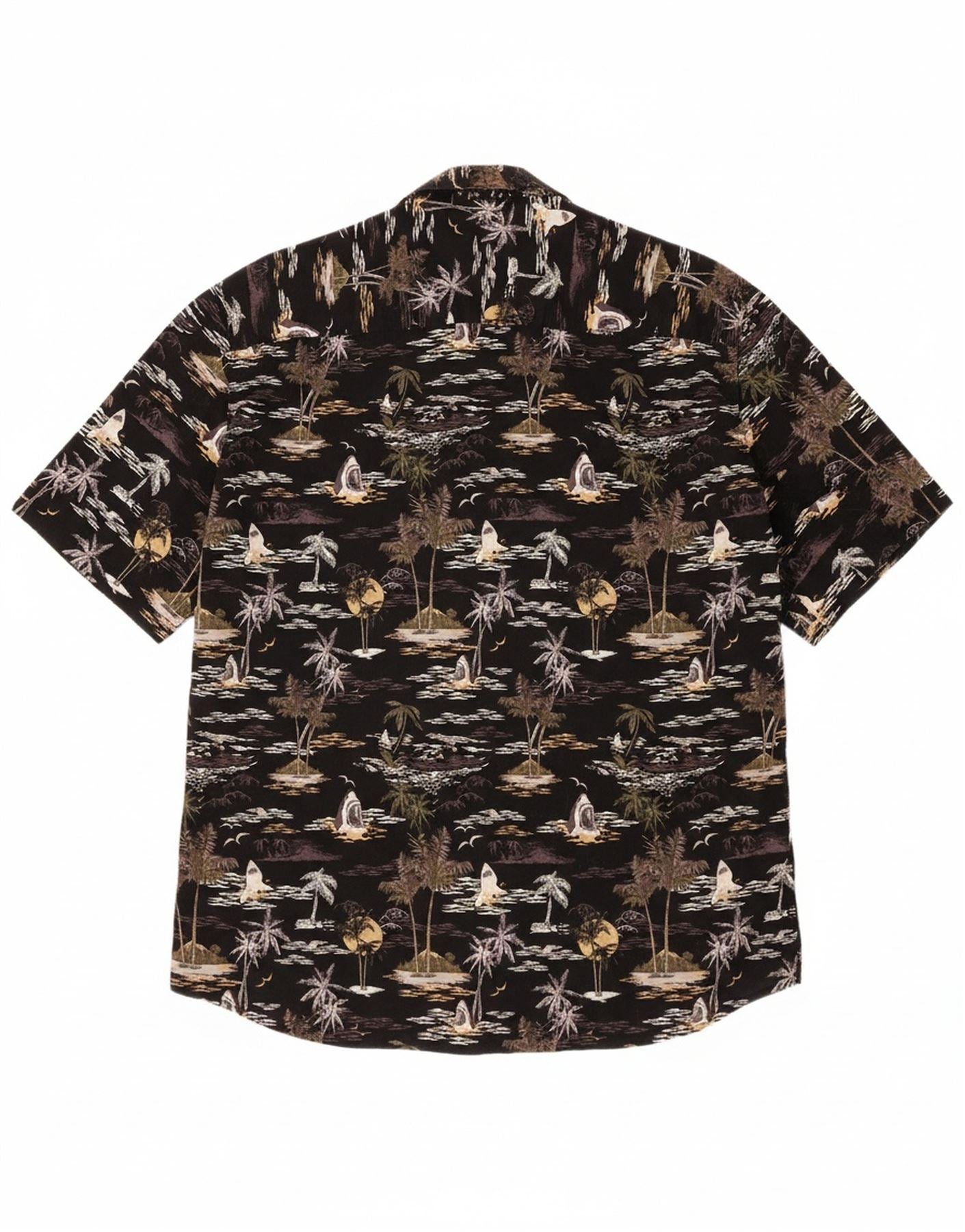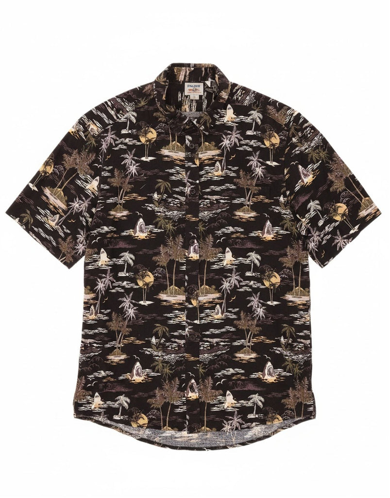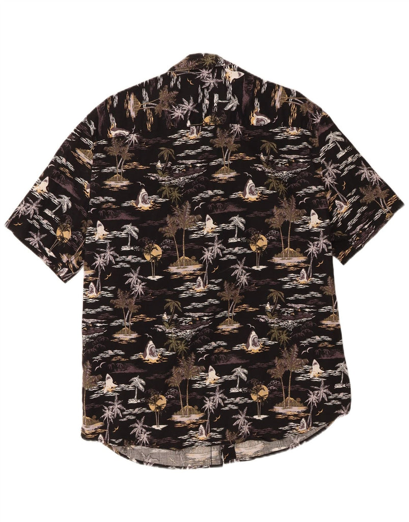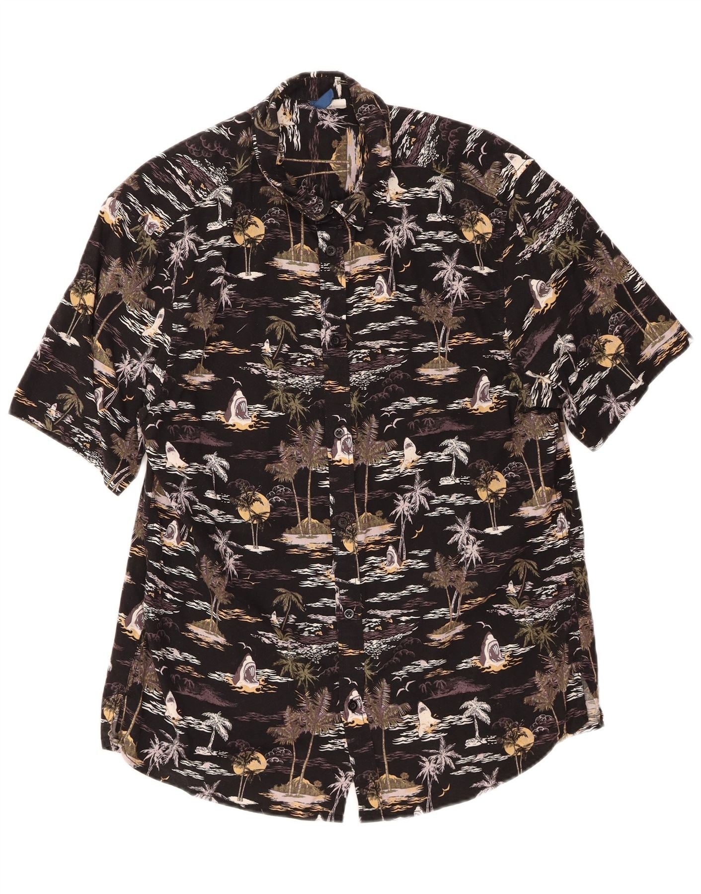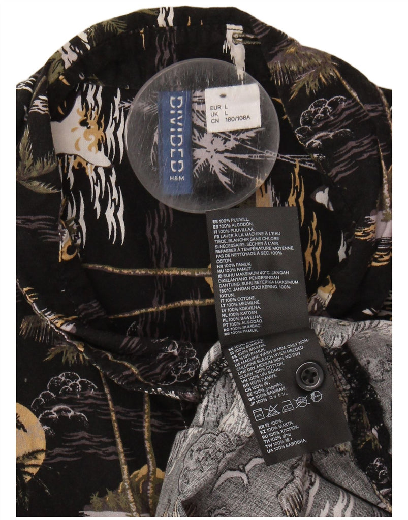 - AI Description: This H&M men's Hawaiian shirt features a black floral pattern woven in cotton. The collared neckline and button closure give it a relaxed, casual style. Short sleeves and a regular fit offer comfort and ease. The floral pattern brings a touch of visual interest. It features a collared neckline.