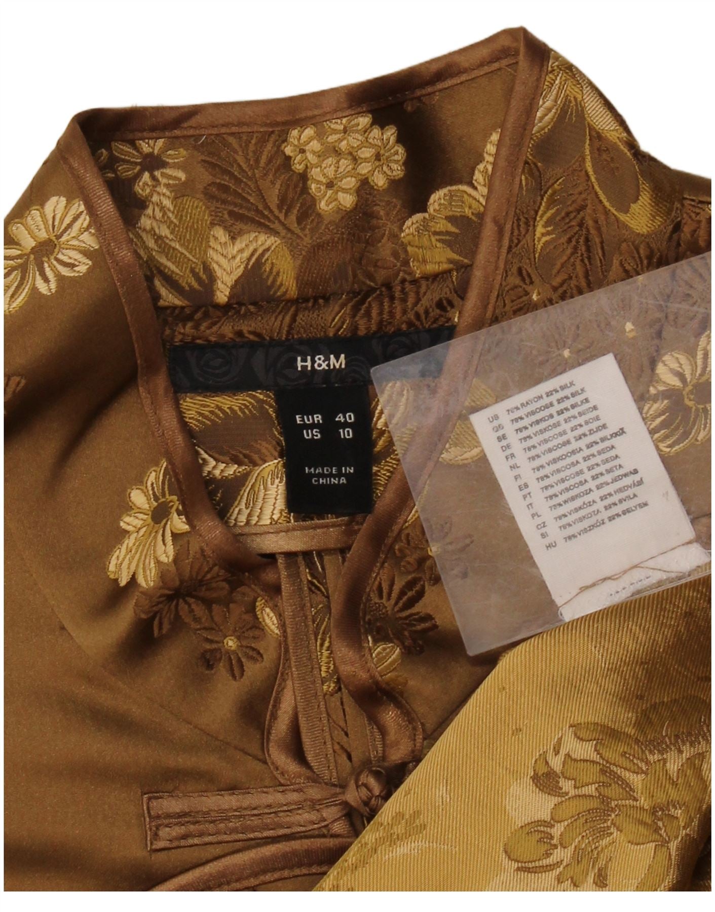 H&M Womens 5 Button Blazer Jacket EU 40 Medium Brown Floral Viscose