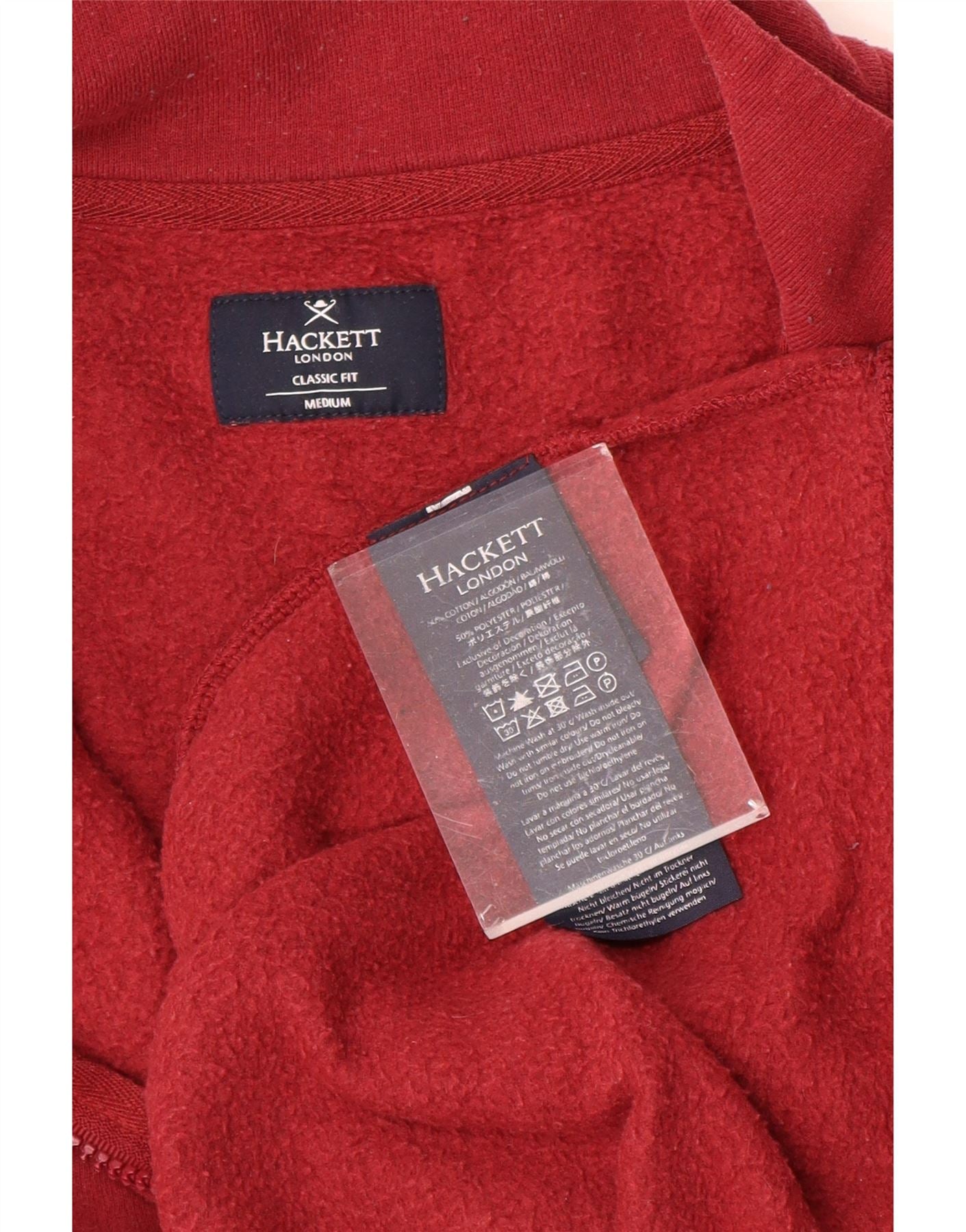HACKETT Mens Classic Fit Zip Neck Sweatshirt Jumper Medium Red Cotton