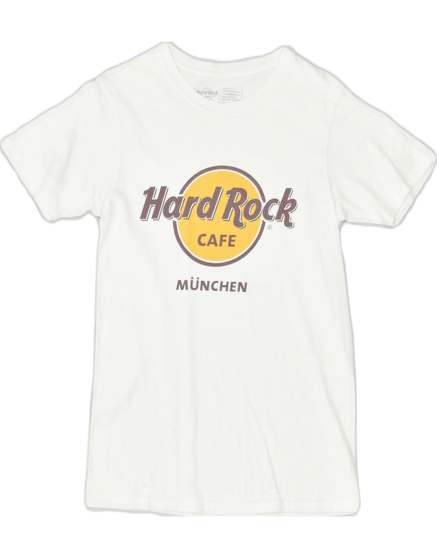 HARD ROCK CAFE T-shirt grafica da donna Monaco UK 6 XS cotone bianco