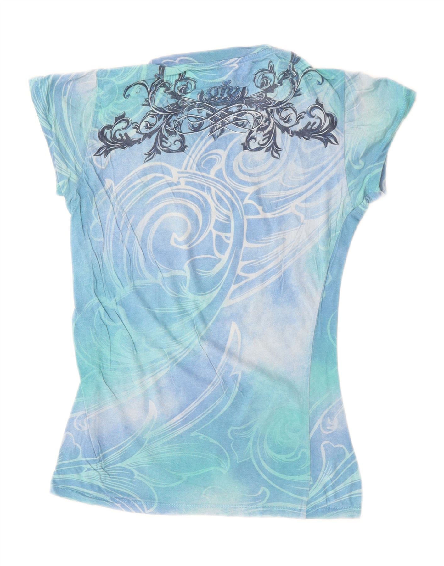 HARD ROCK CAFE T-shirt grafica da donna Couture Top UK 8 Small Blue Tie Dye