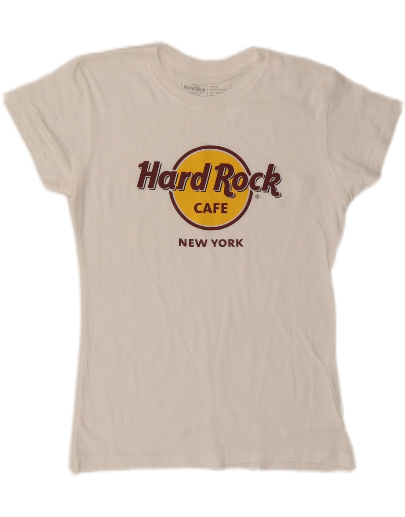 HARD ROCK CAFE Maglietta grafica da donna New York UK 10 piccola bianca