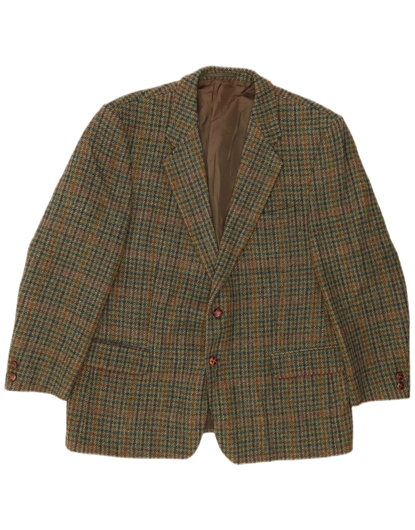 HARRIS TWEED Giacca blazer da uomo a 2 bottoni UK 40 grande pied de poule kaki