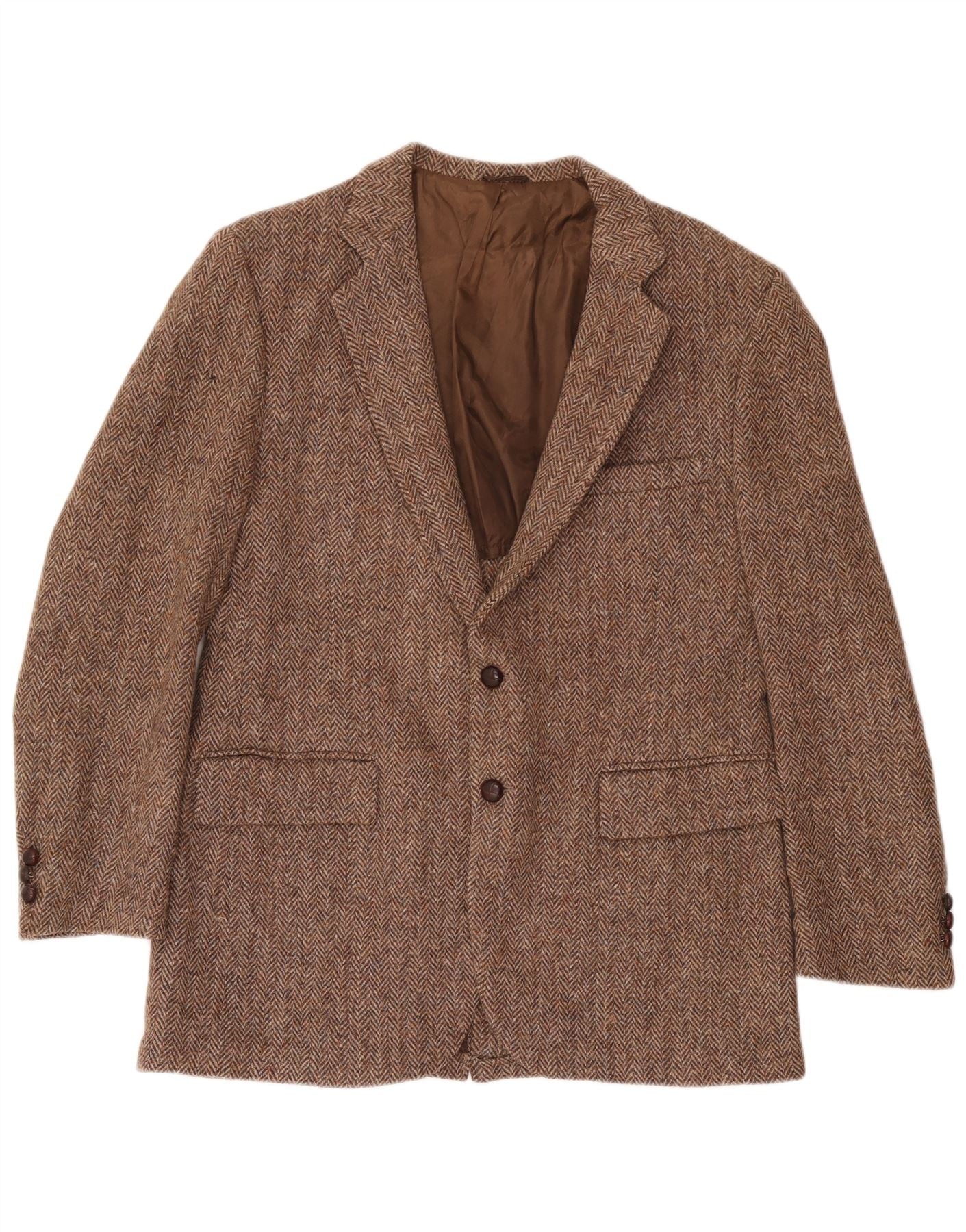 Giacca blazer a 2 bottoni da uomo Harris Tweed UK 42 XL lana a spina di pesce marrone