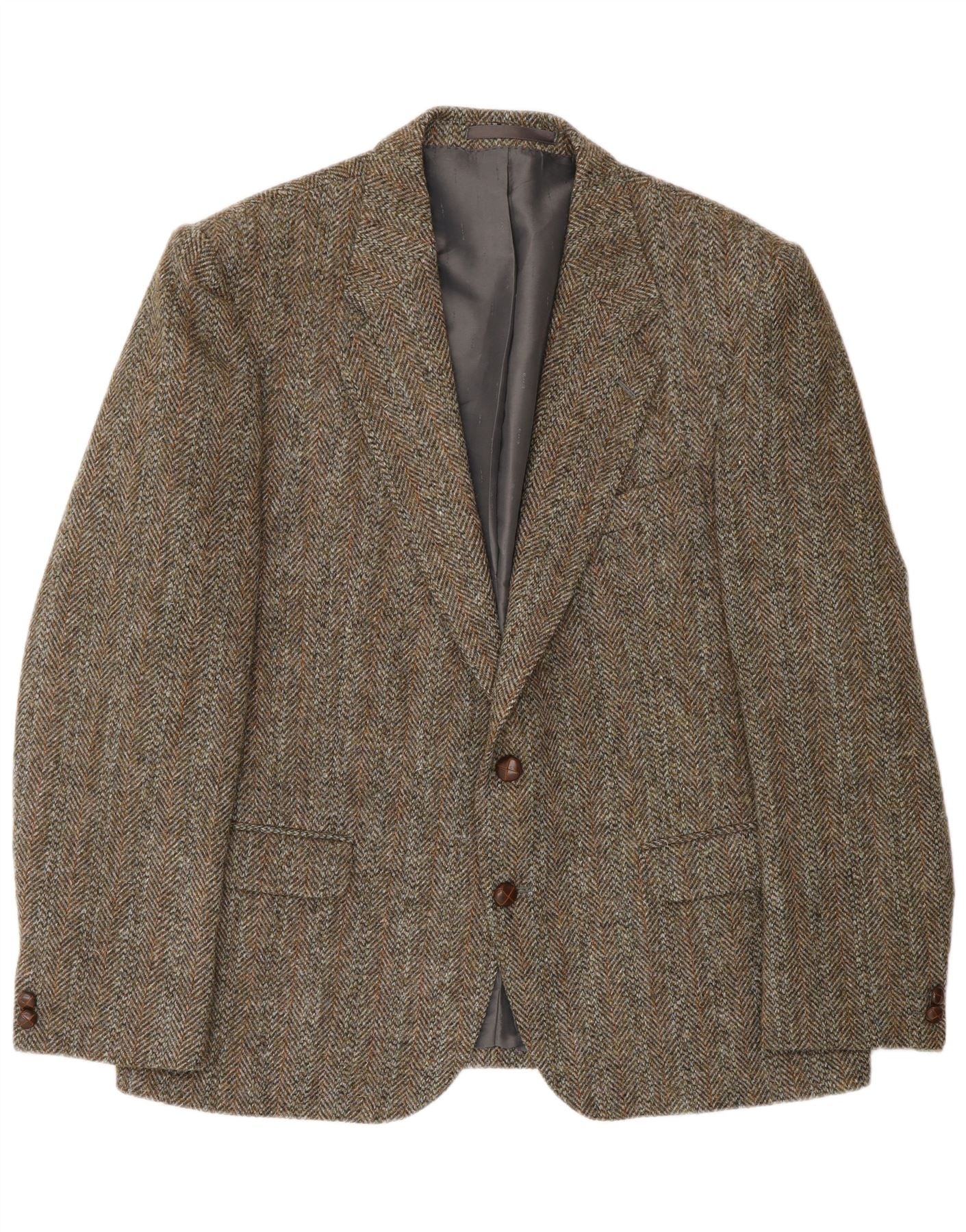HARRIS TWEED Giacca blazer da uomo a 2 bottoni UK 46 3XL Lana a spina di pesce verde