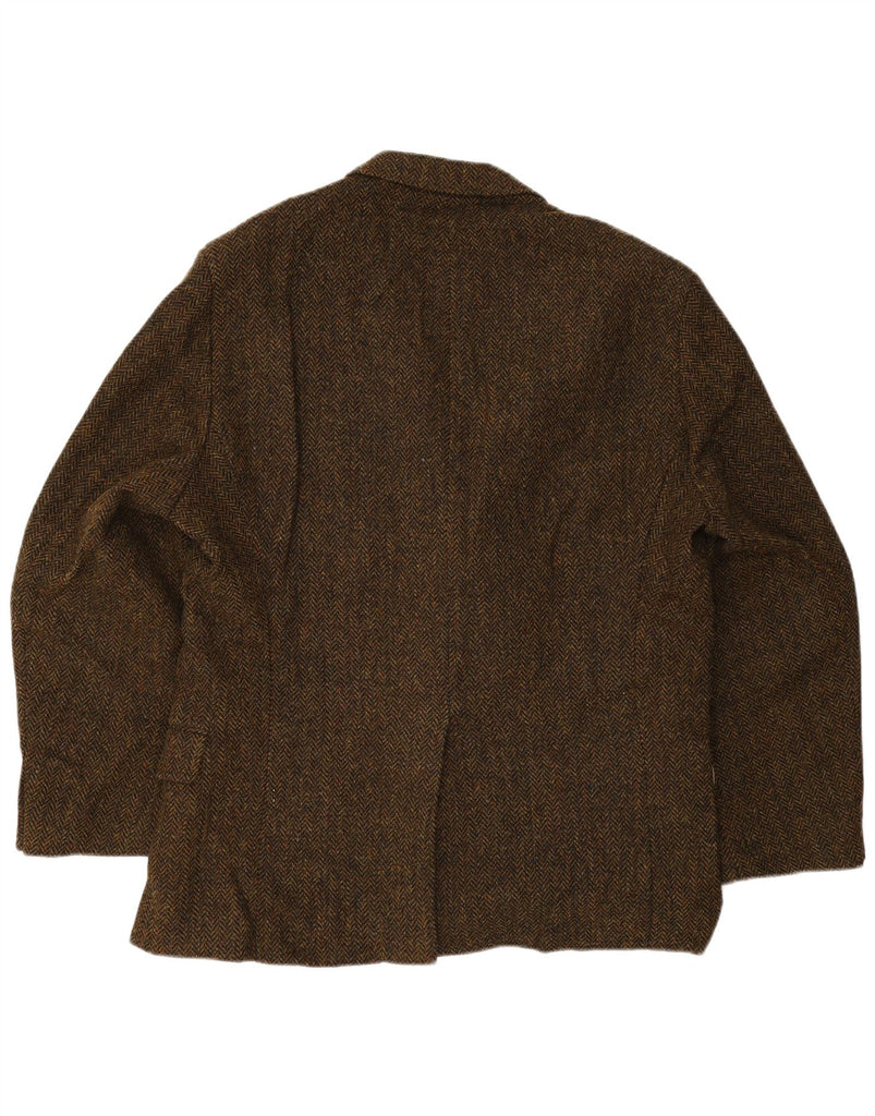 HARRIS TWEED Mens Long 3 Button Blazer Jacket UK 44 2XL Brown Herringbone