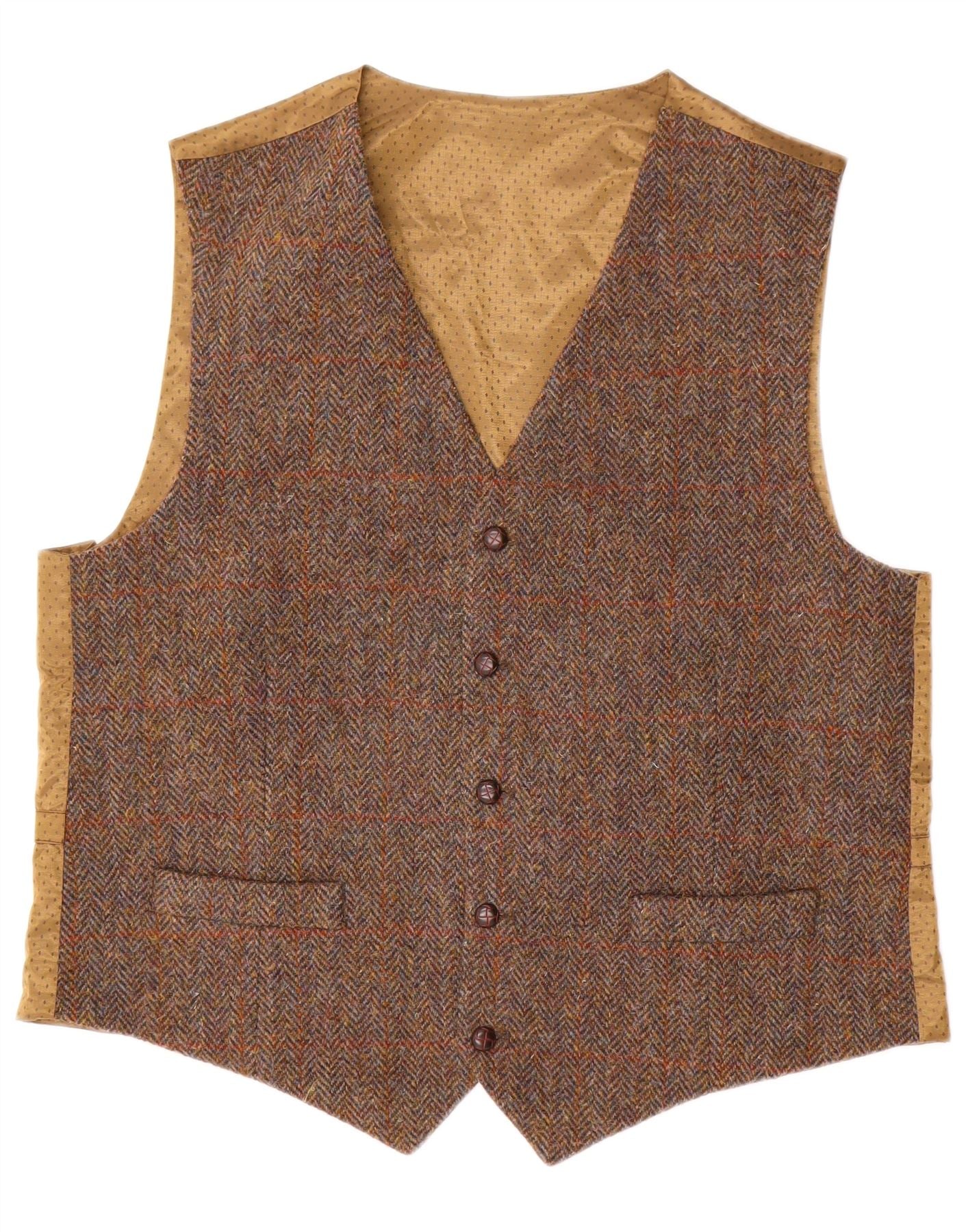 HARRIS TWEED Mens Waistcoat XL Brown Herringbone Wool