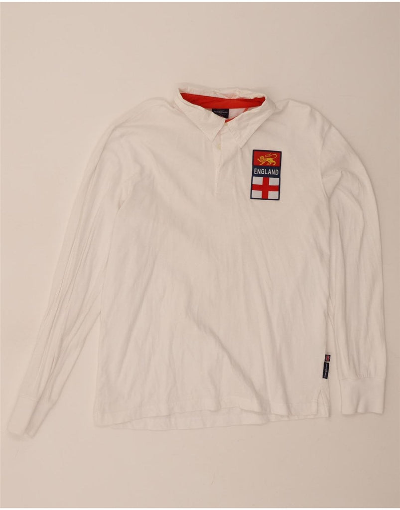 HENRI LLOYD Mens England Long Sleeve Rugby Polo Shirt XL White Cotton
