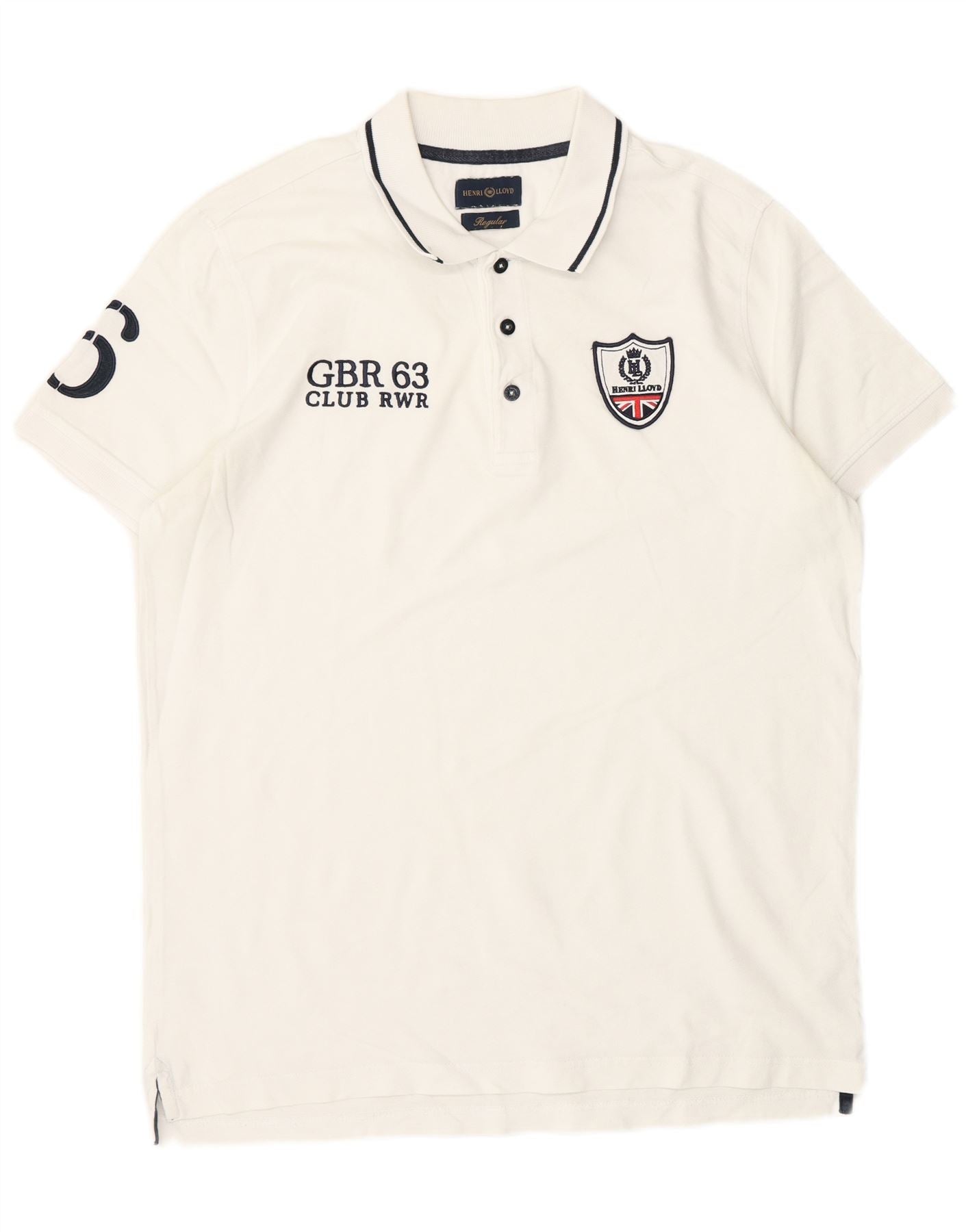 HENRI LLOYD Mens Regular Graphic Polo Shirt Medium White Cotton