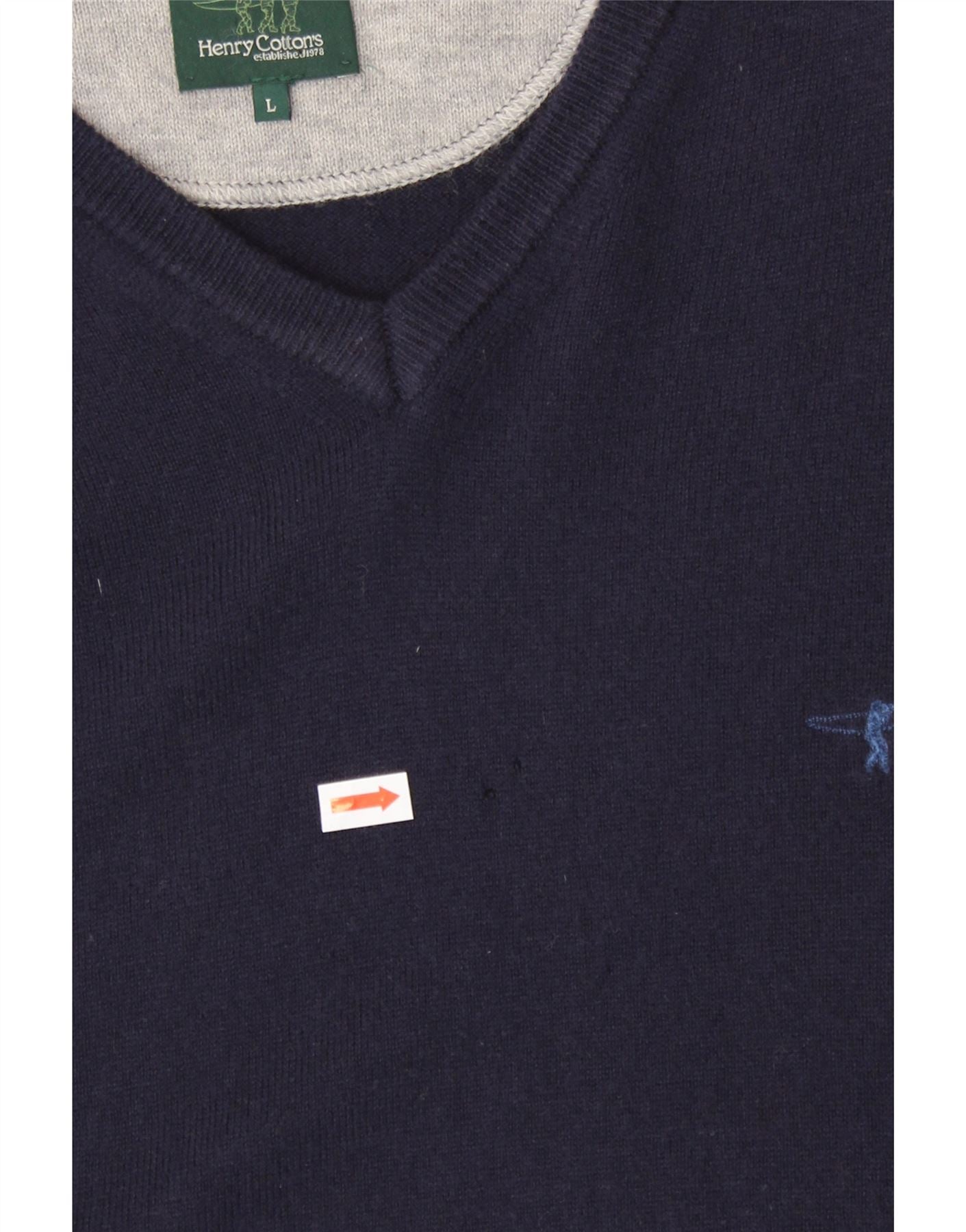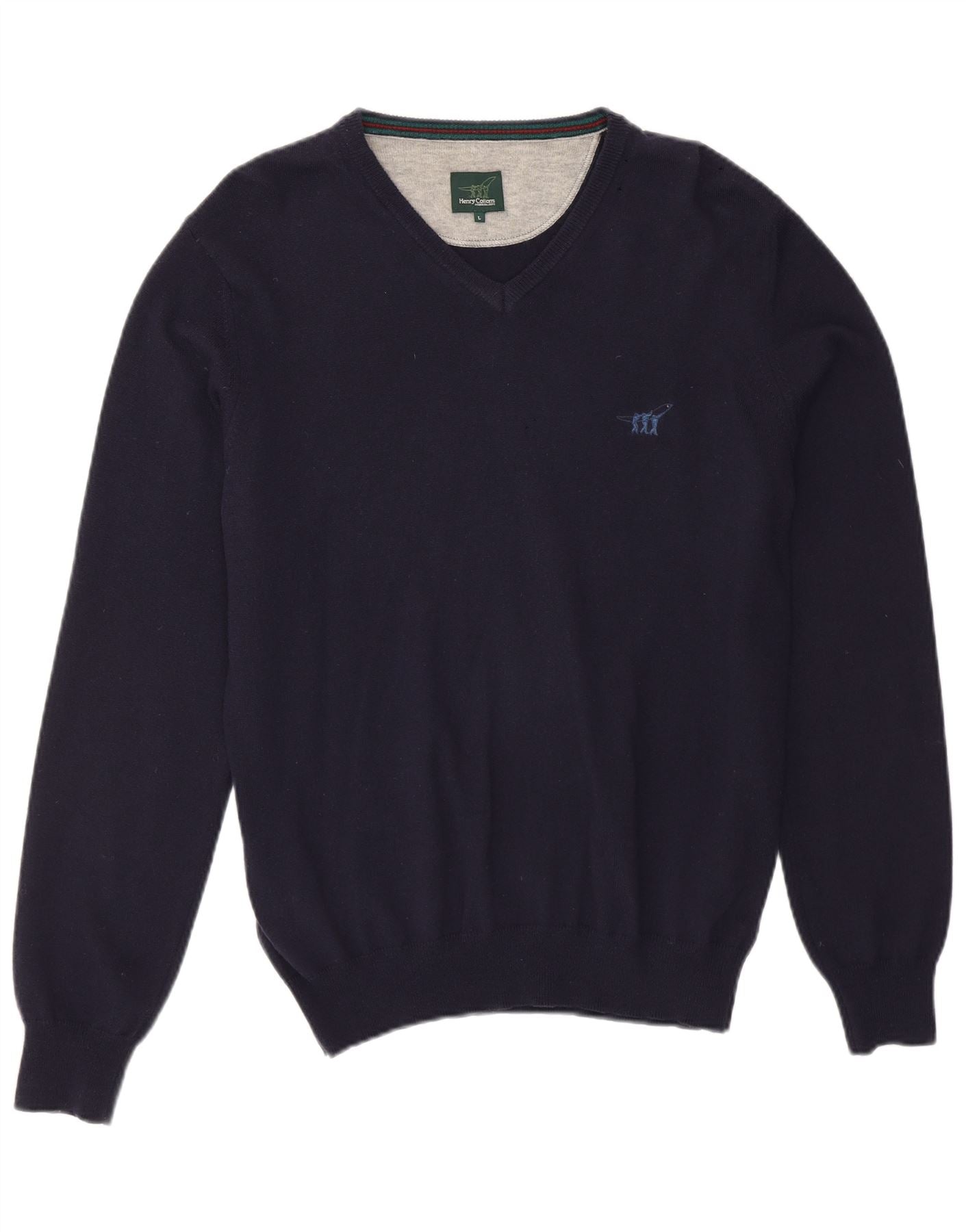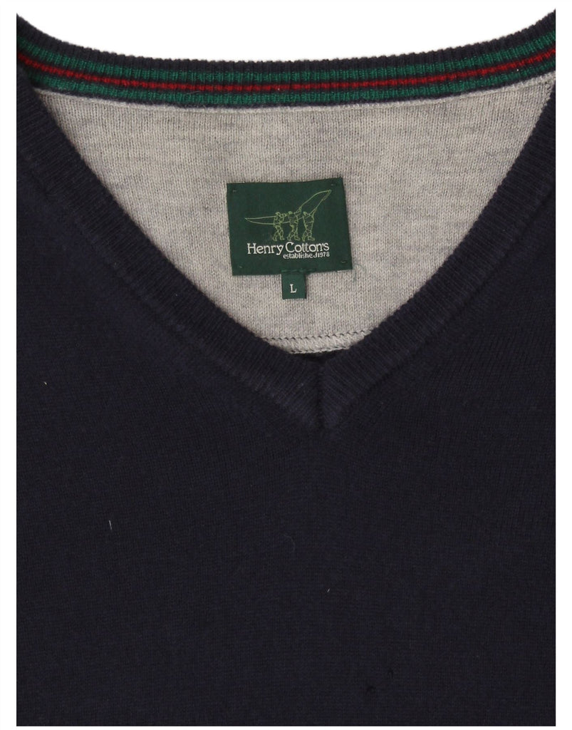 HENRY COTTONS Maglione da uomo con scollo a V grande blu navy