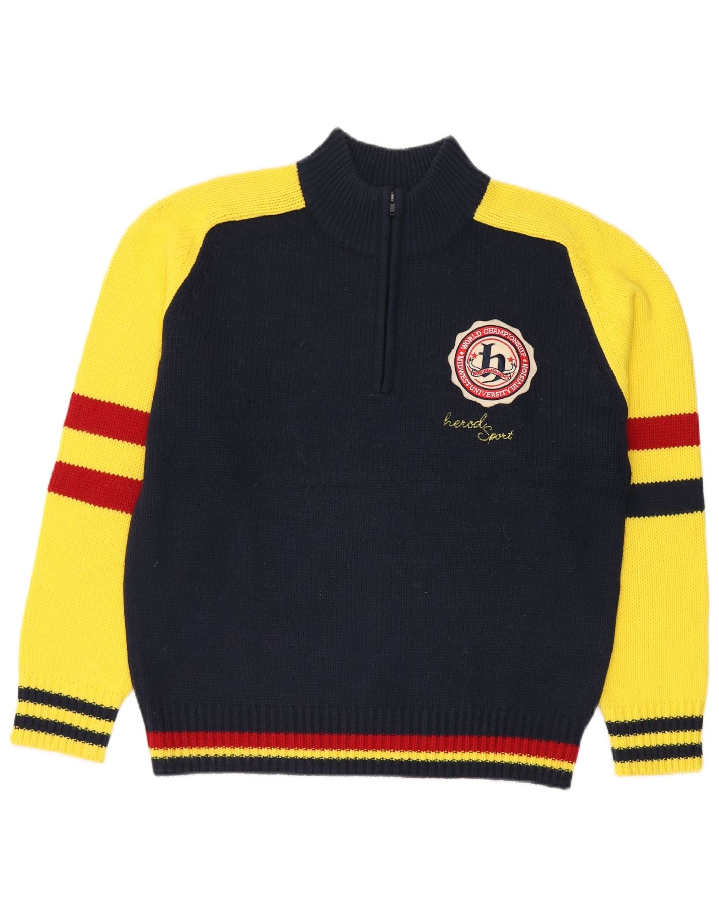 HEROD SPORT Maglione da donna con collo con zip UK 18 XL Blu navy color block