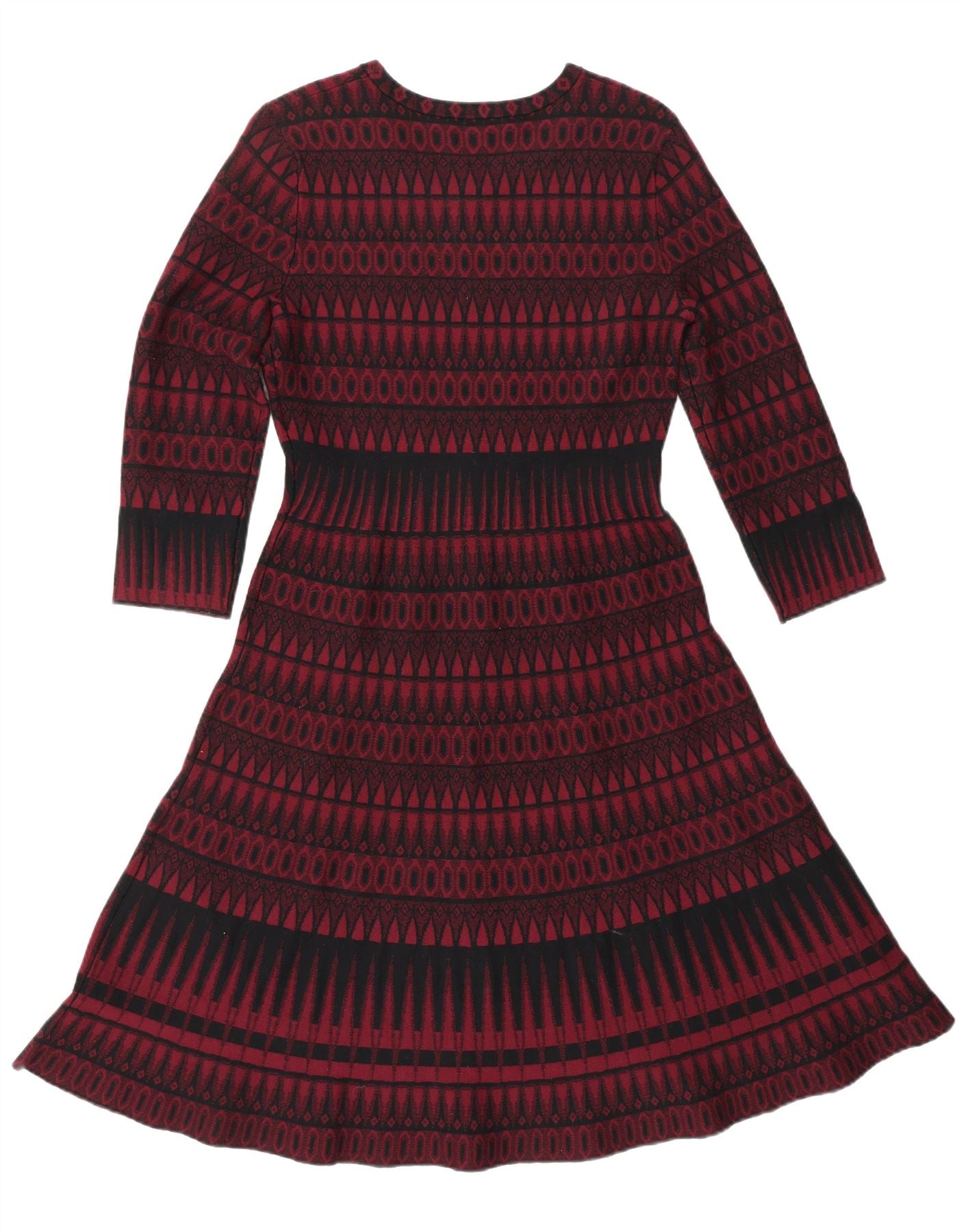 HOBBS Abito maglione da donna con maniche a 3/4 UK 10 Piccolo viscosa geometrica rossa