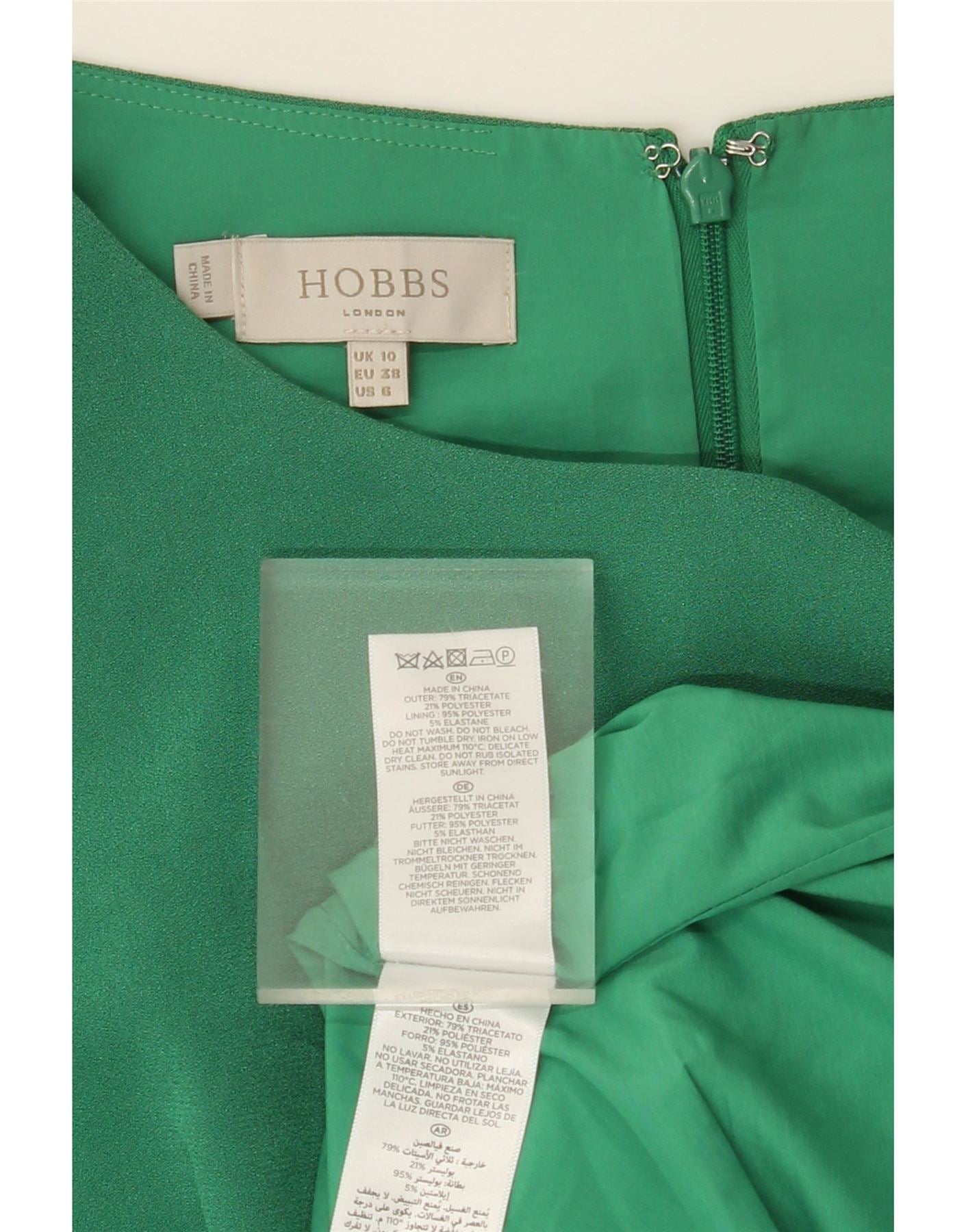 - Composizione esatta del materiale: Esterno: 79% triacetato, 21% poliestere. Fodera: 95% poliestere, 5% elastan.