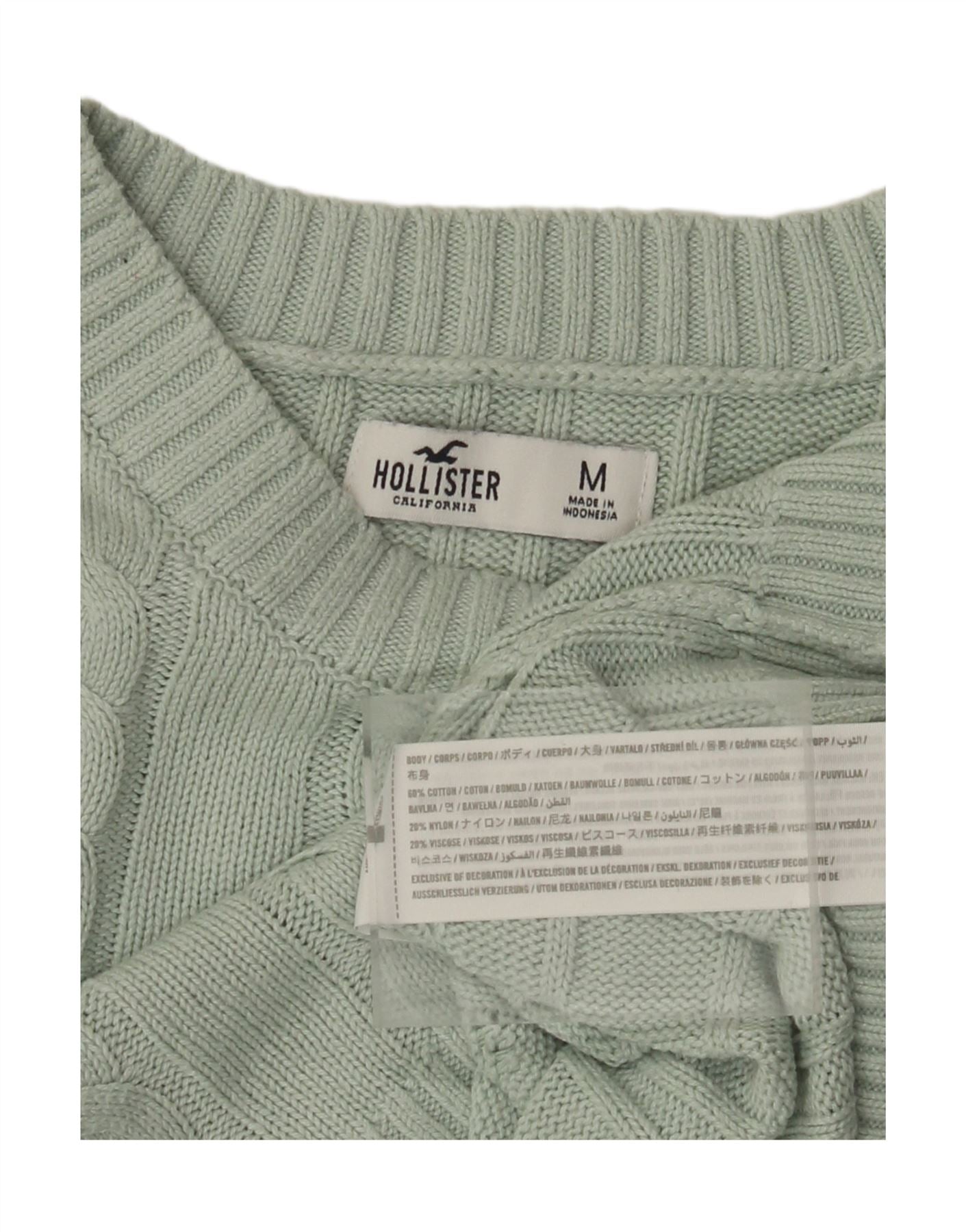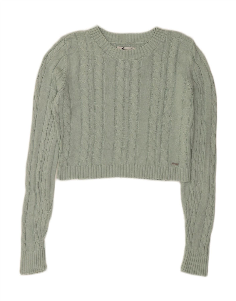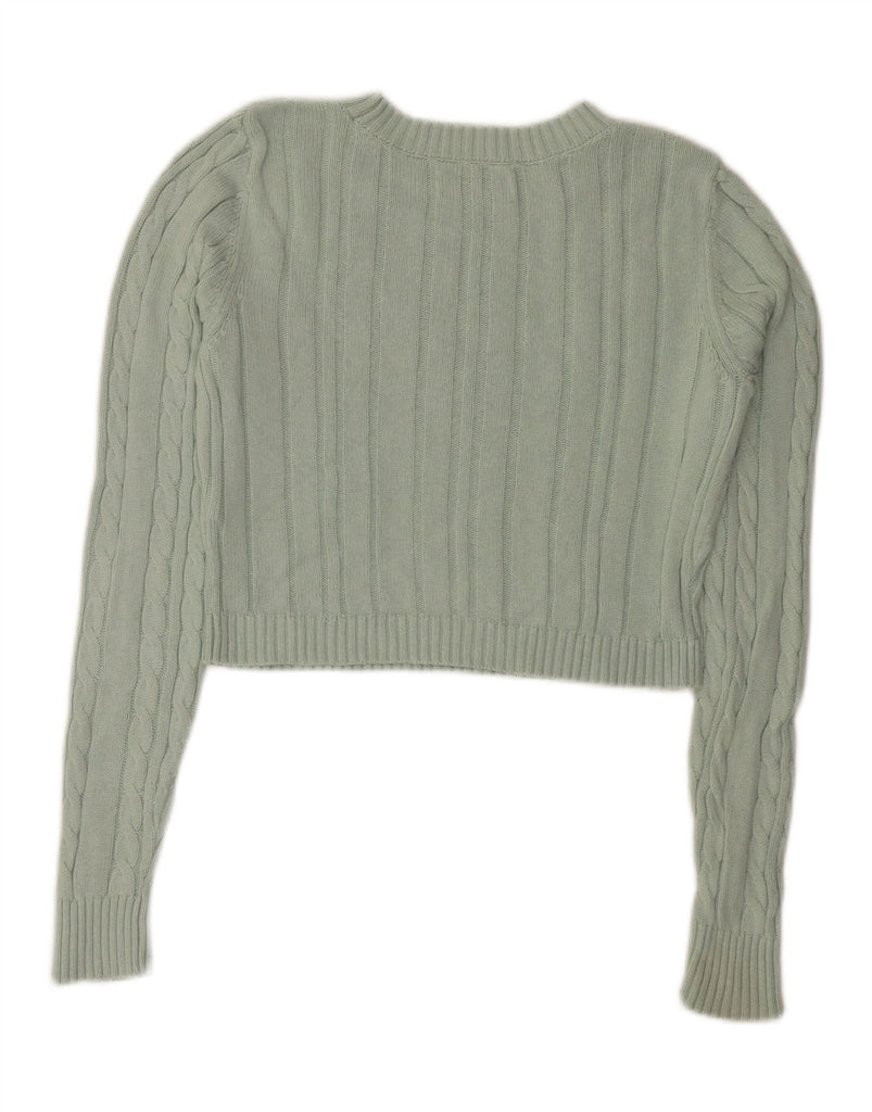 HOLLISTER Womens Crop Boat Neck Jumper Sweater UK 14 Medium Green Cotton