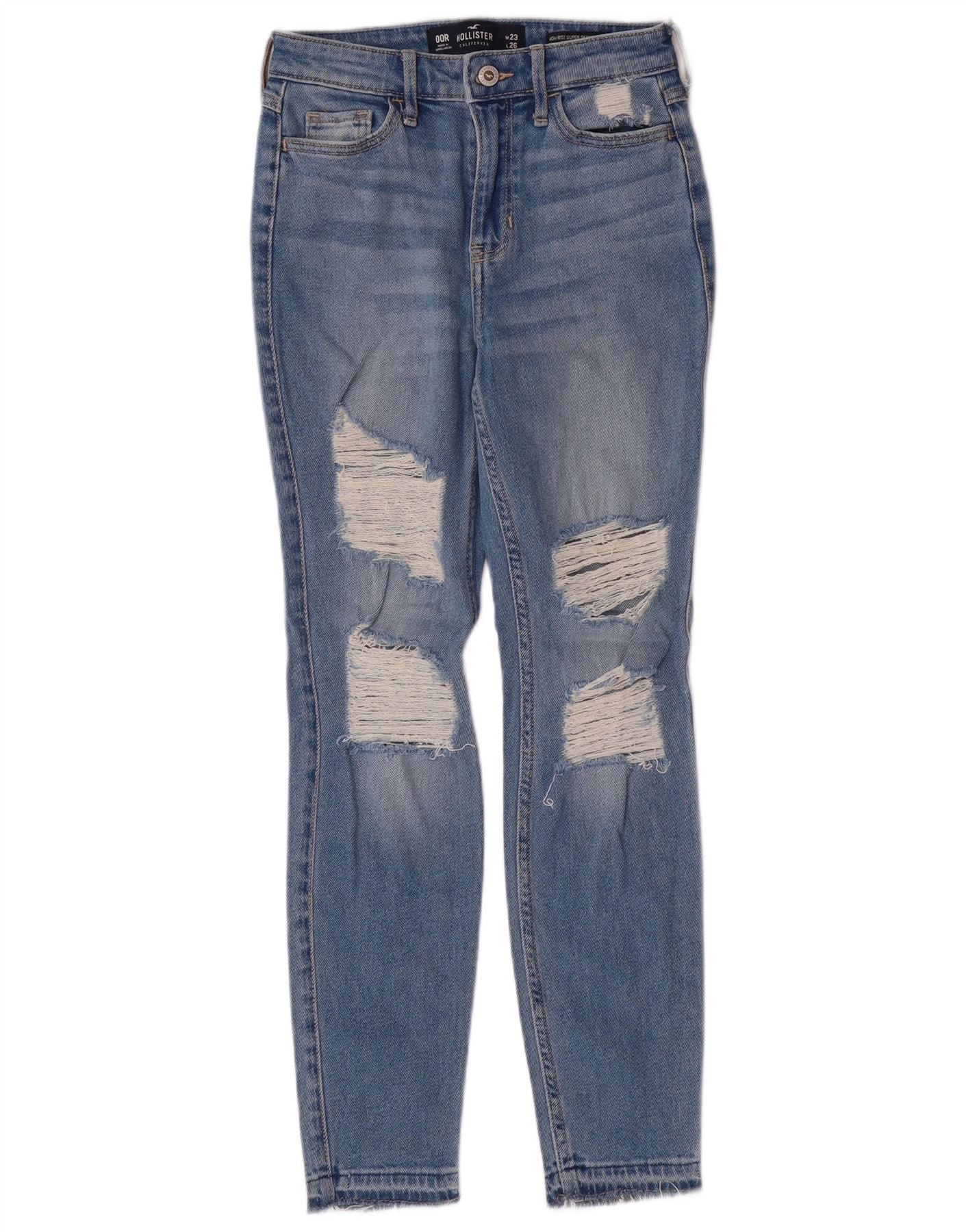 HOLLISTER Womens Distressed High Rise Skinny Jeans US 00 2XS W23 L26 Blue