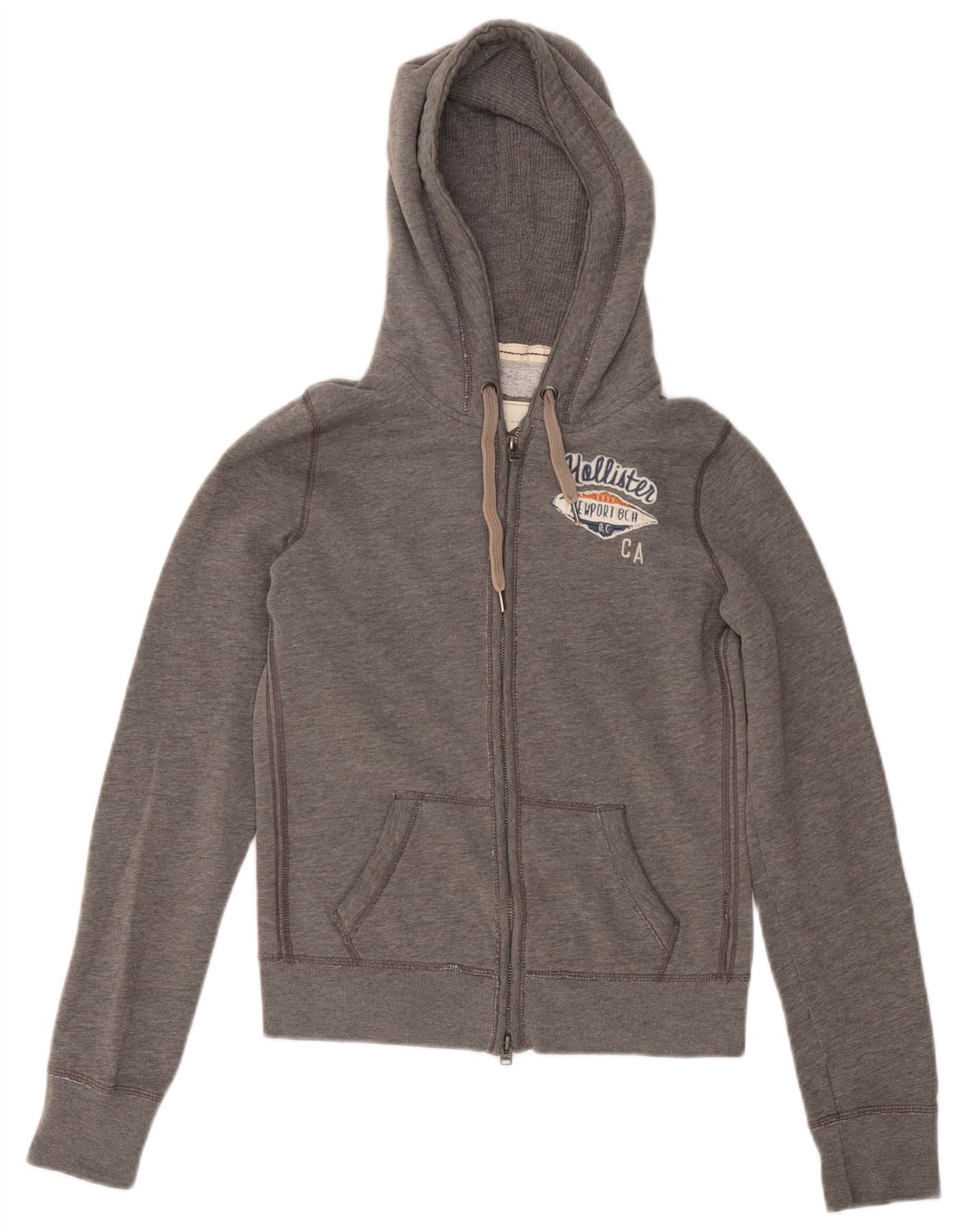 Maglione con cappuccio e zip grafica da donna HOLLISTER UK 10 piccolo cotone grigio