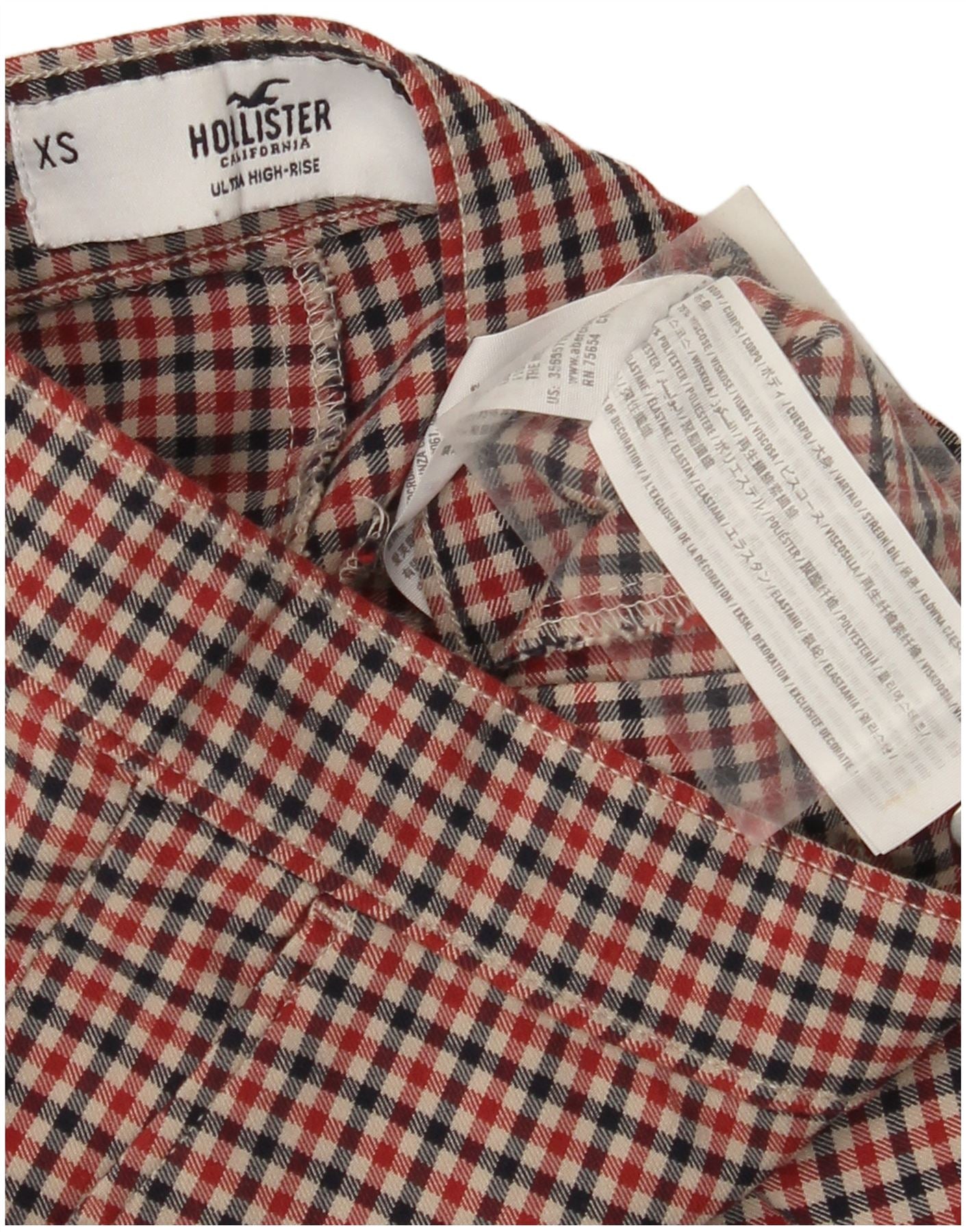 Pantaloni chino skinny da donna HOLLISTER XS W24 L28 viscosa a quadri rossi