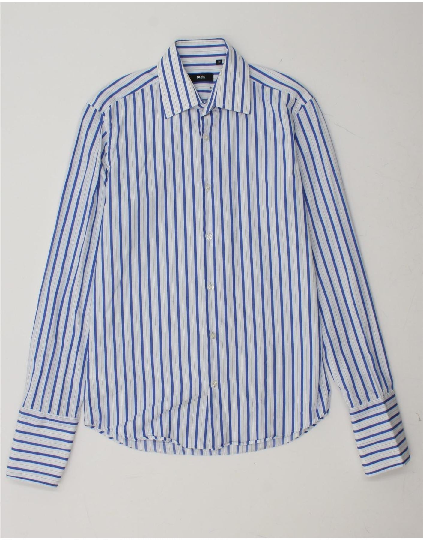 Camicia formale da uomo HUGO BOSS taglia 38 15 cotone a righe blu medio