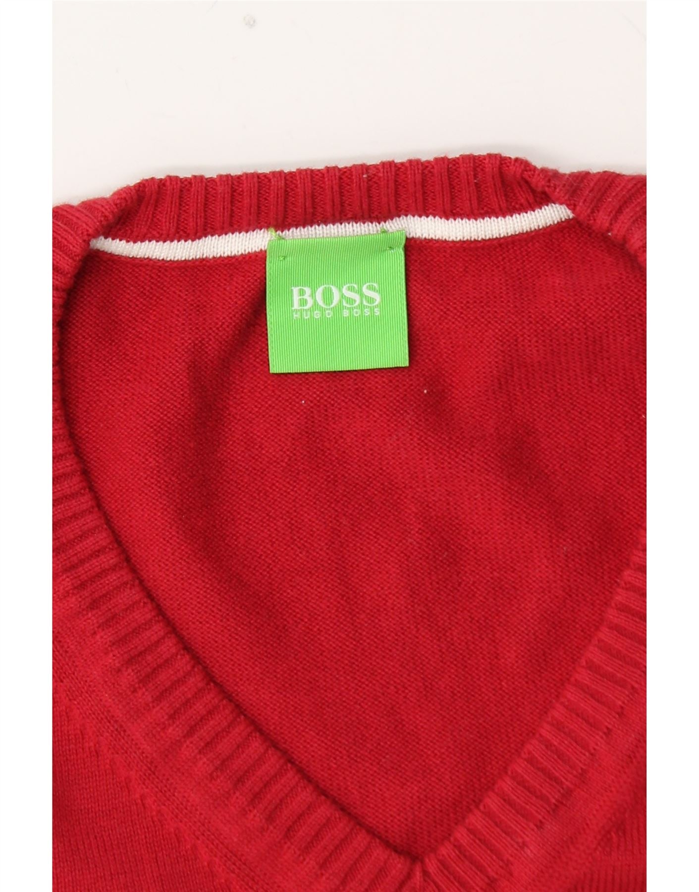 Maglione da uomo con scollo a V grafico HUGO BOSS grande blocco di colore rosso
