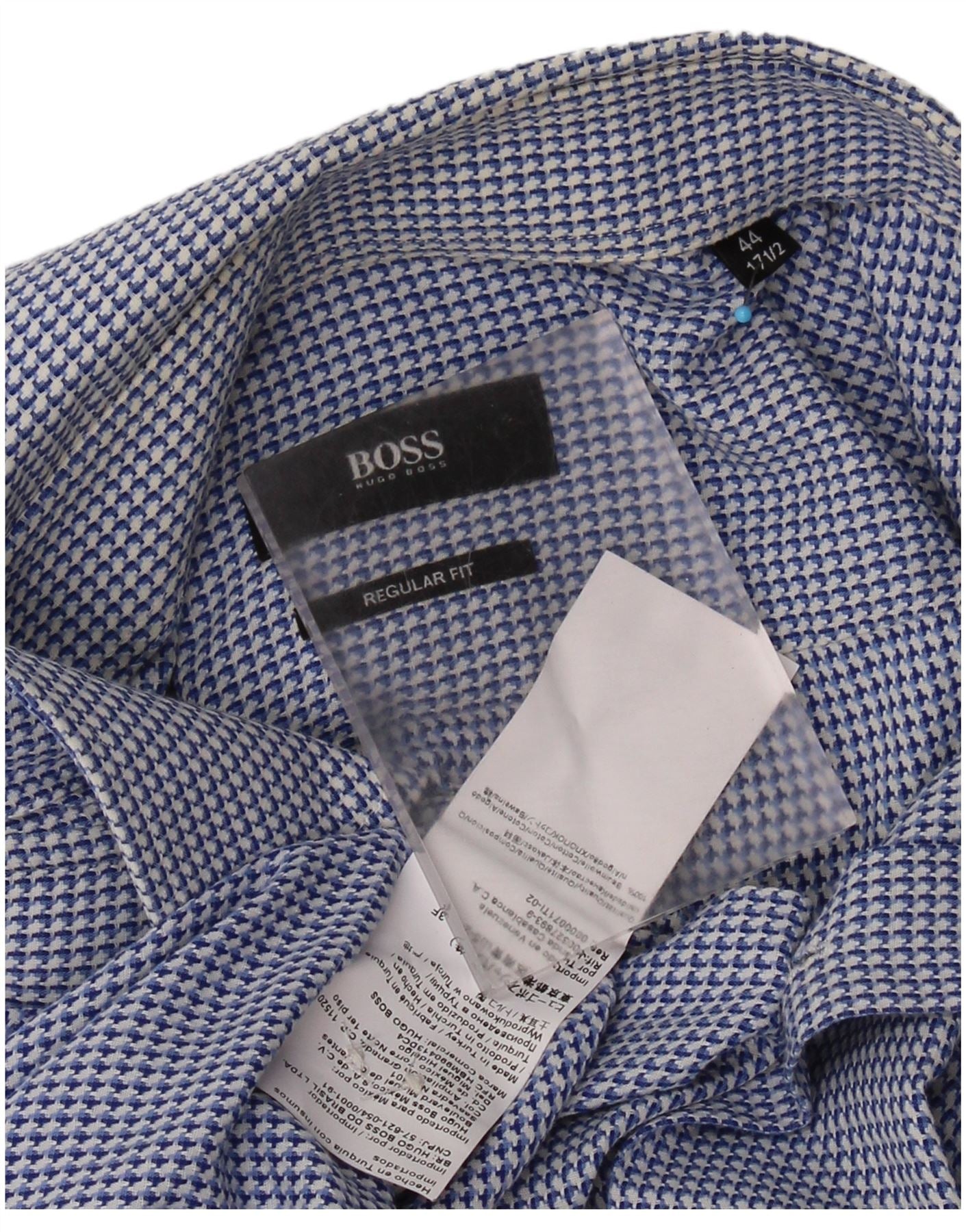 Camicia HUGO BOSS da uomo vestibilità regolare taglia 44 17 1/2 XL cotone pied de poule blu