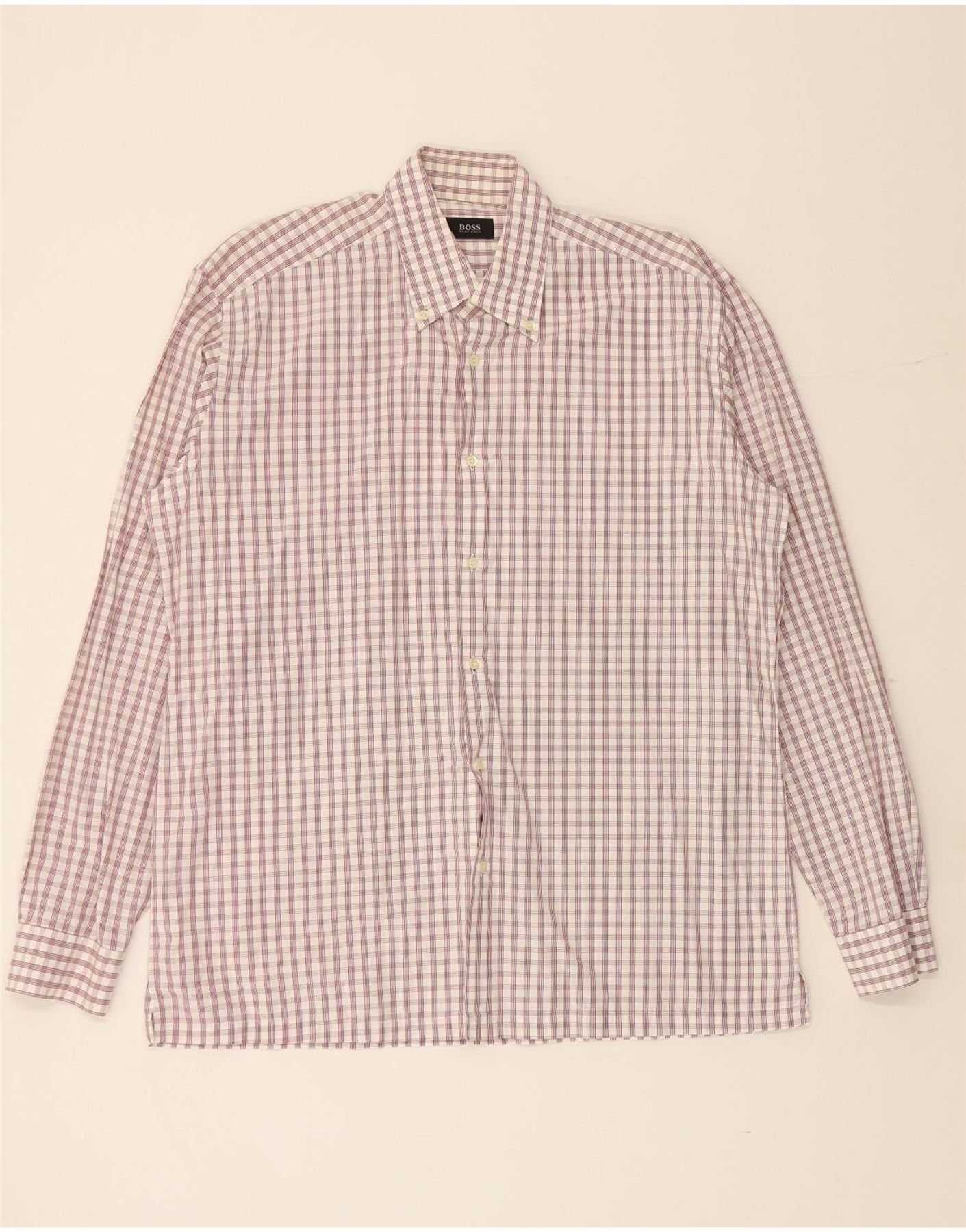 Camicia da uomo HUGO BOSS taglia 16 41 grande cotone a quadri bianchi