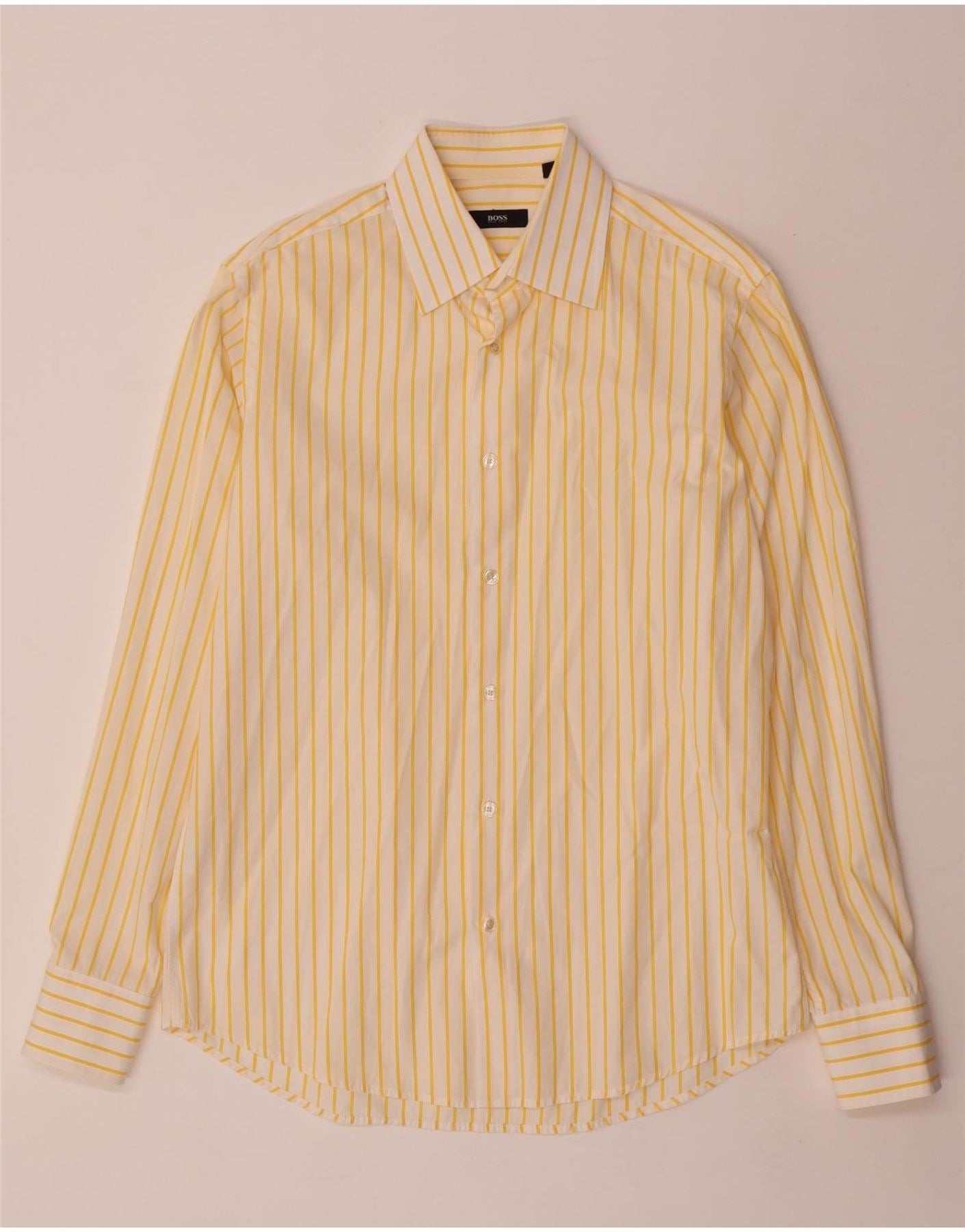 Camicia da uomo HUGO BOSS taglia 40 15 3/4 cotone a righe gialle medie