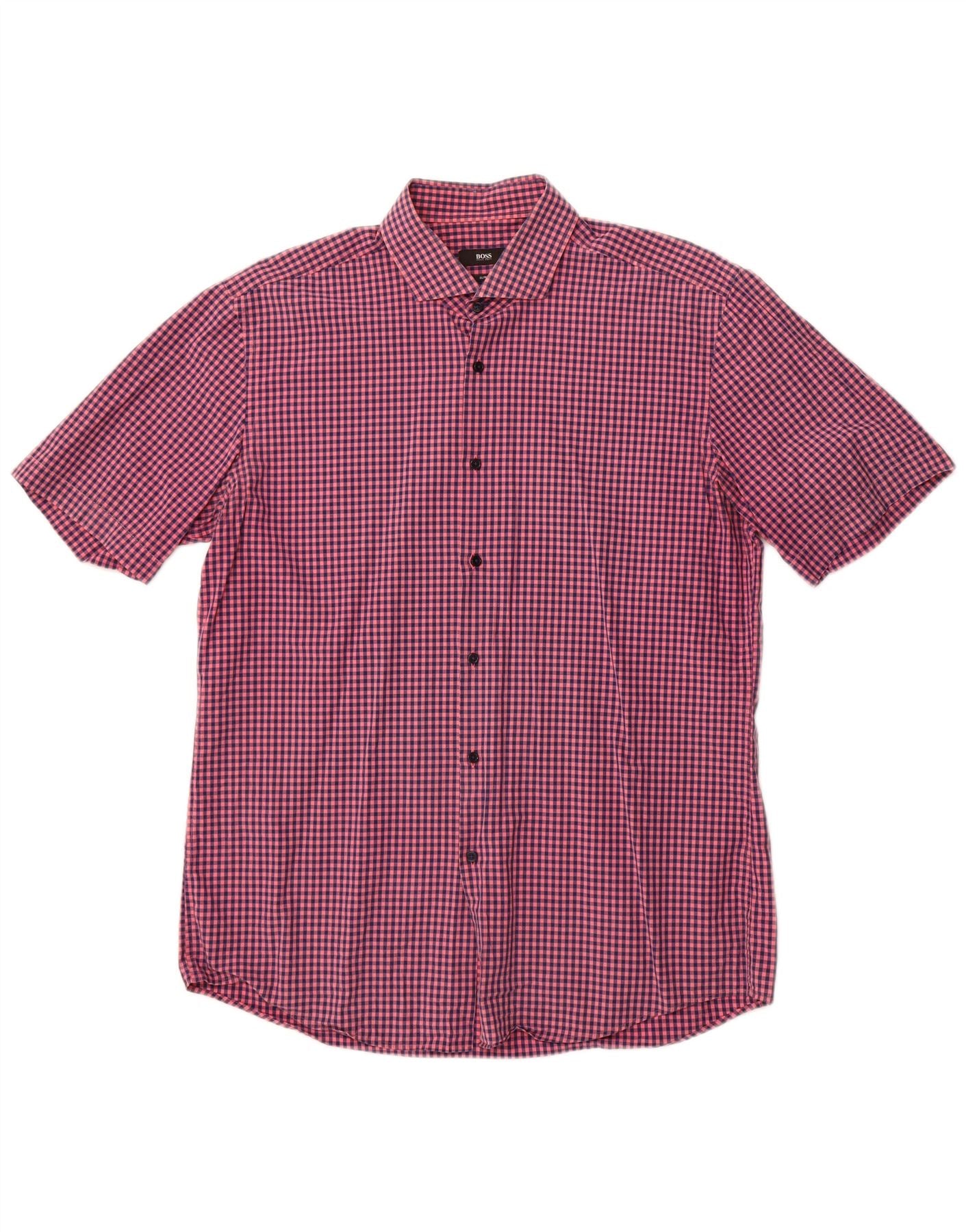Hugo Boss Camicia da uomo a maniche corte slim fit grande a quadretti rosa