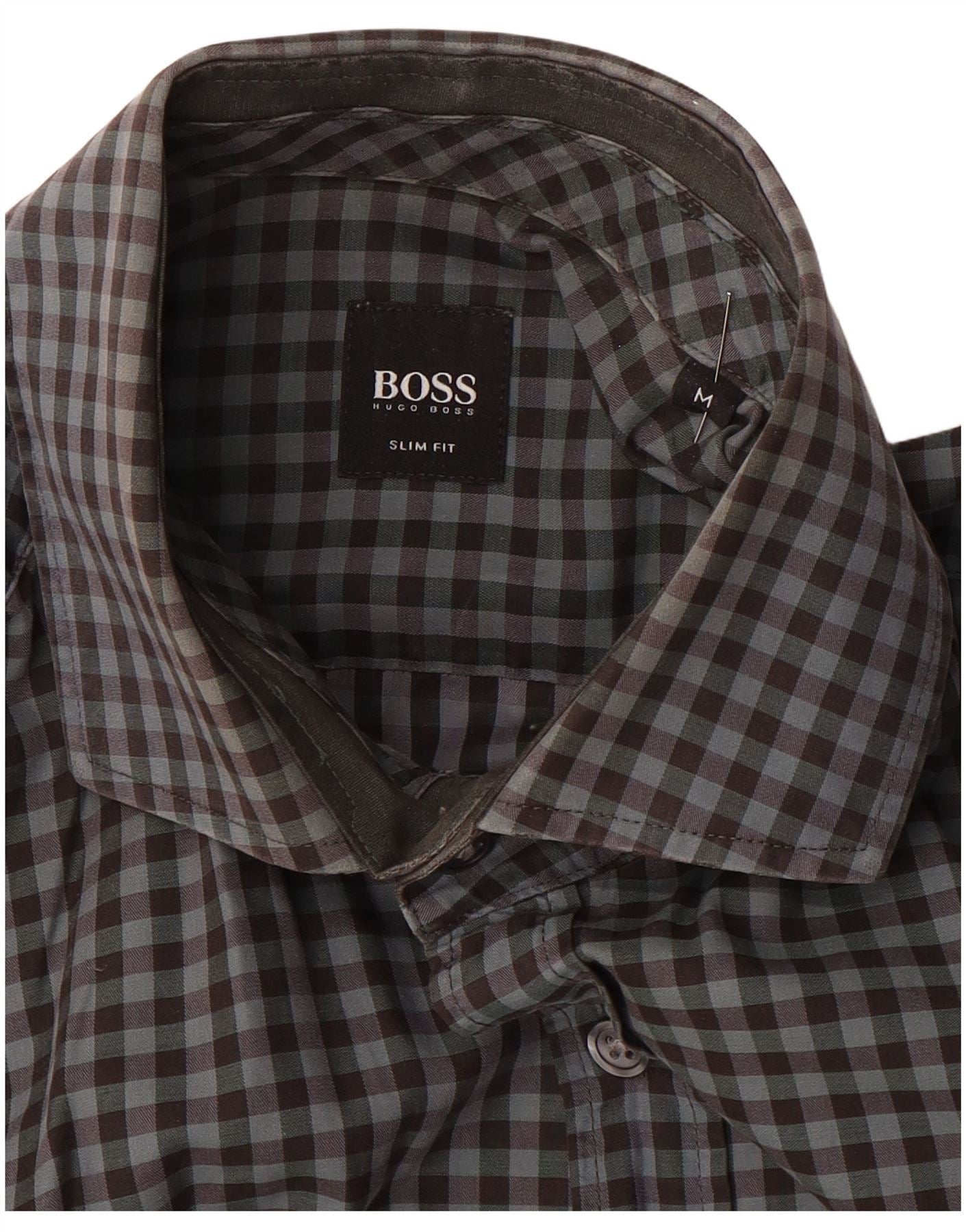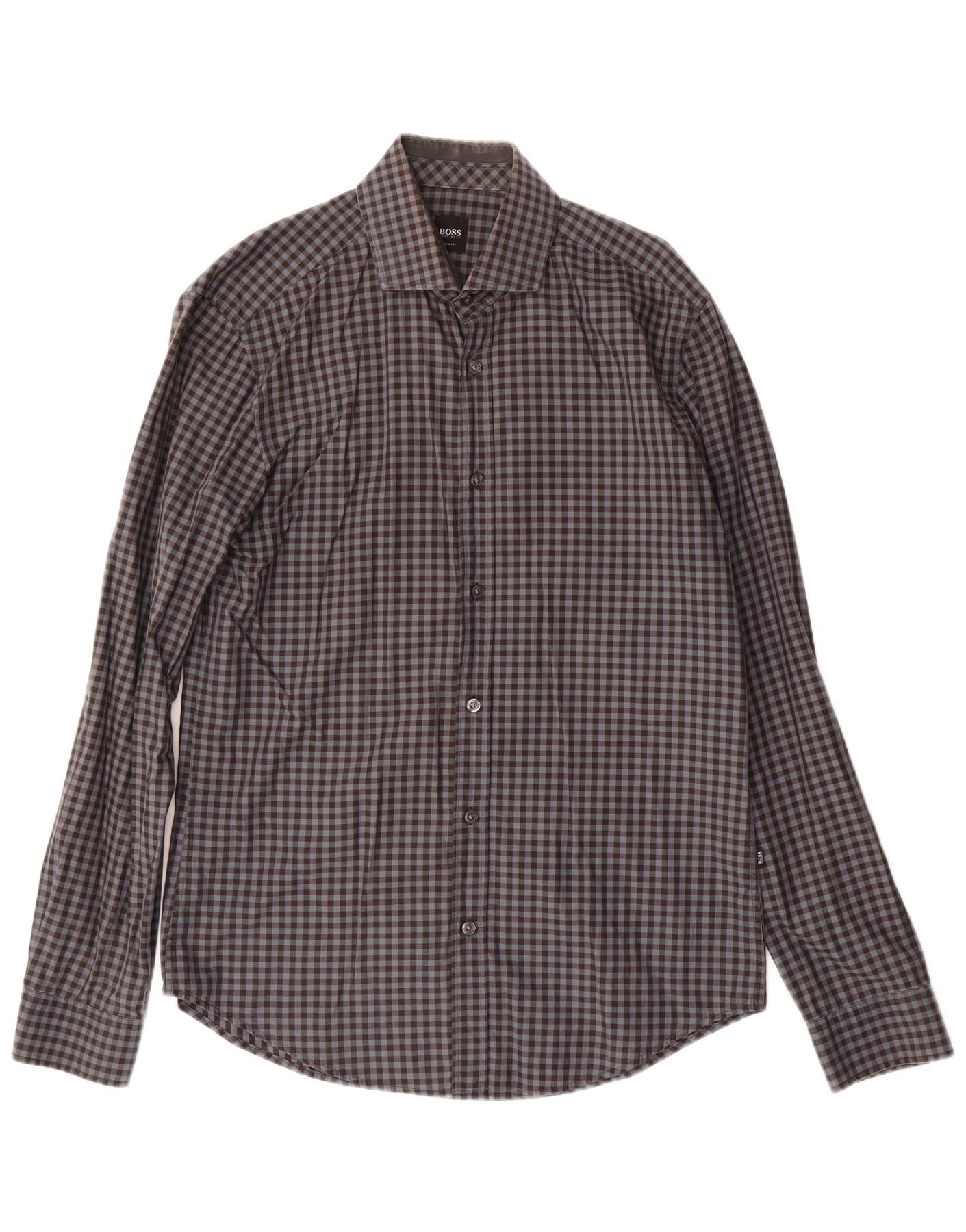 Camicia slim fit da uomo HUGO BOSS a quadretti grigio medio