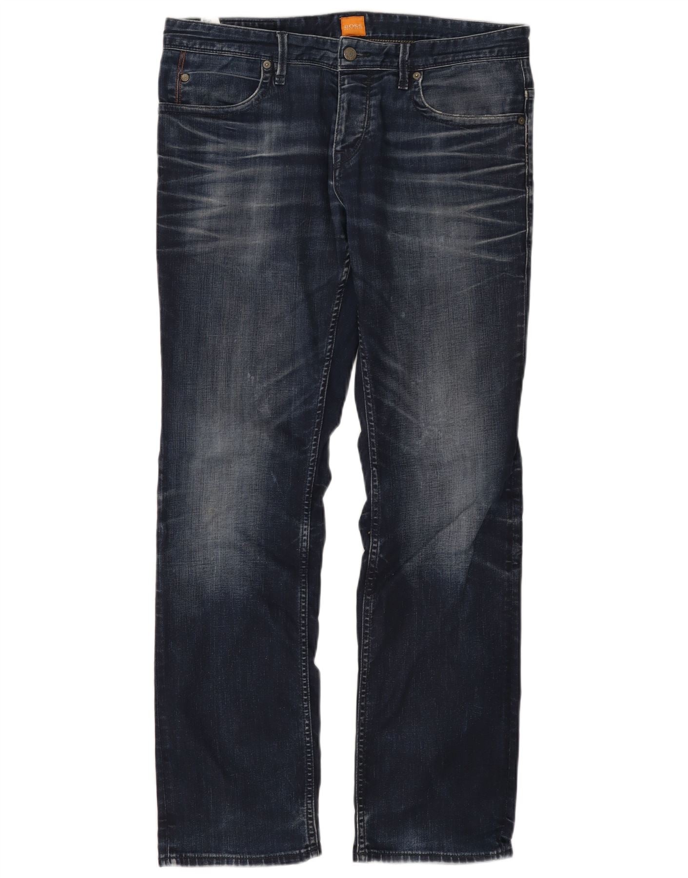 Jeans dritti da uomo HUGO BOSS W34 L32 cotone blu navy