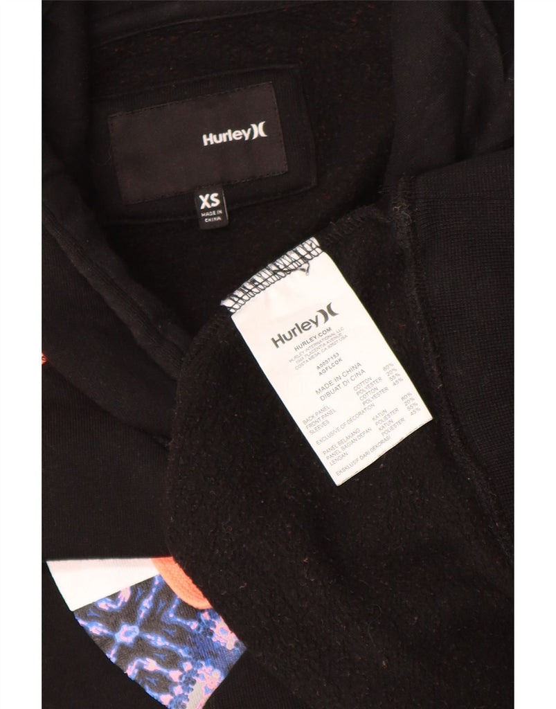 HURLEY Womens Oversized Graphic Hoodie Jumper UK 6 XS Black Colourblock