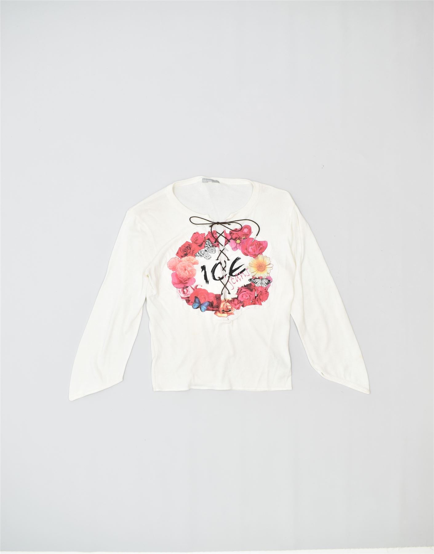 ICEBERG Maglione girocollo con grafica da donna UK 10 Piccolo floreale bianco