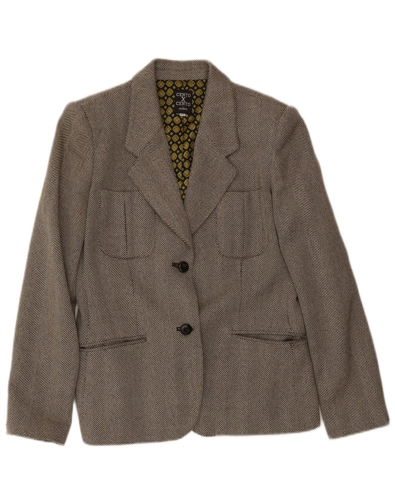 ICEBERG Womens Blazer Jacket IT 44 Medium Brown Herringbone Classic