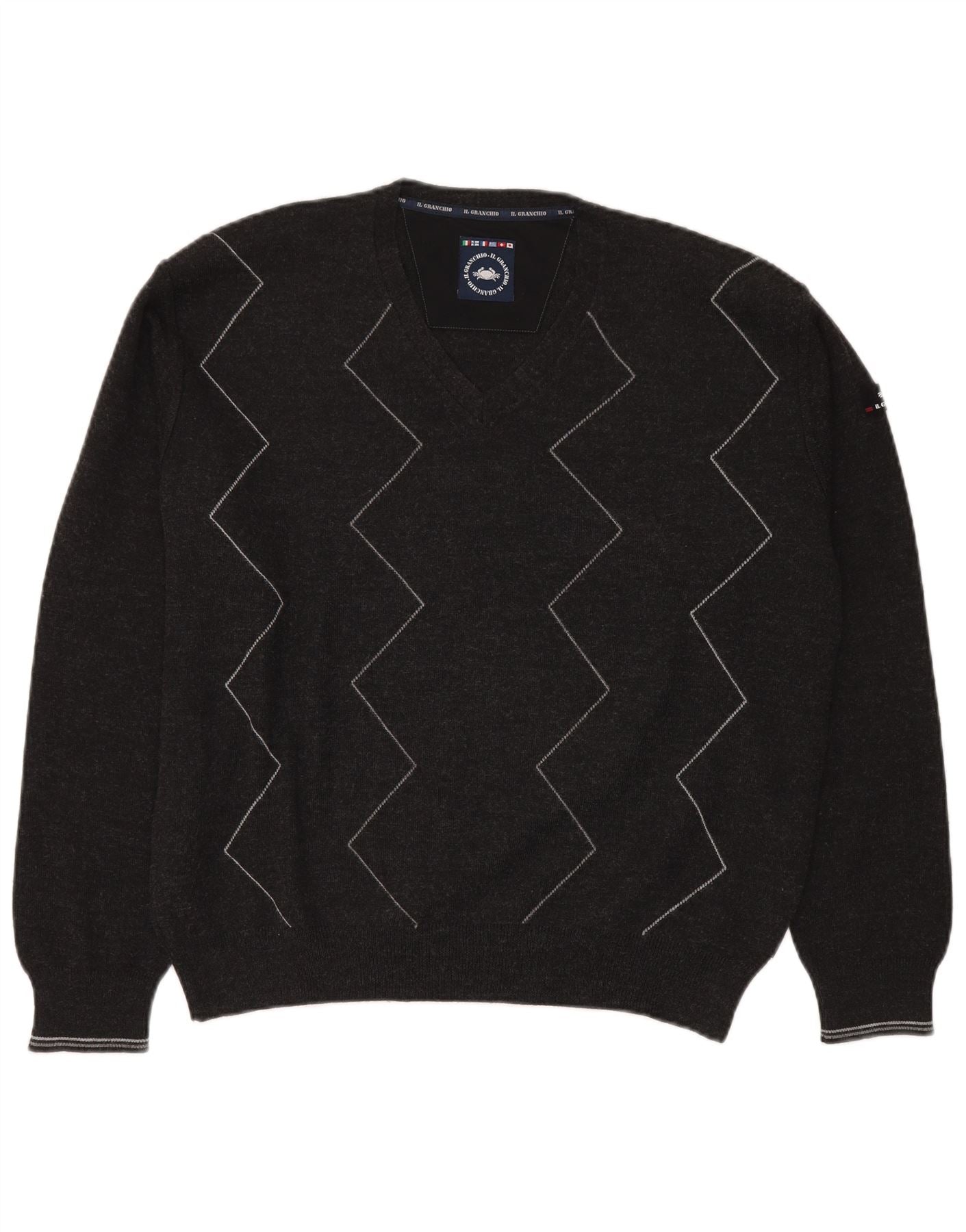 Maglione da uomo con scollo a V Il Granchio, lana vergine grande geometrica grigia