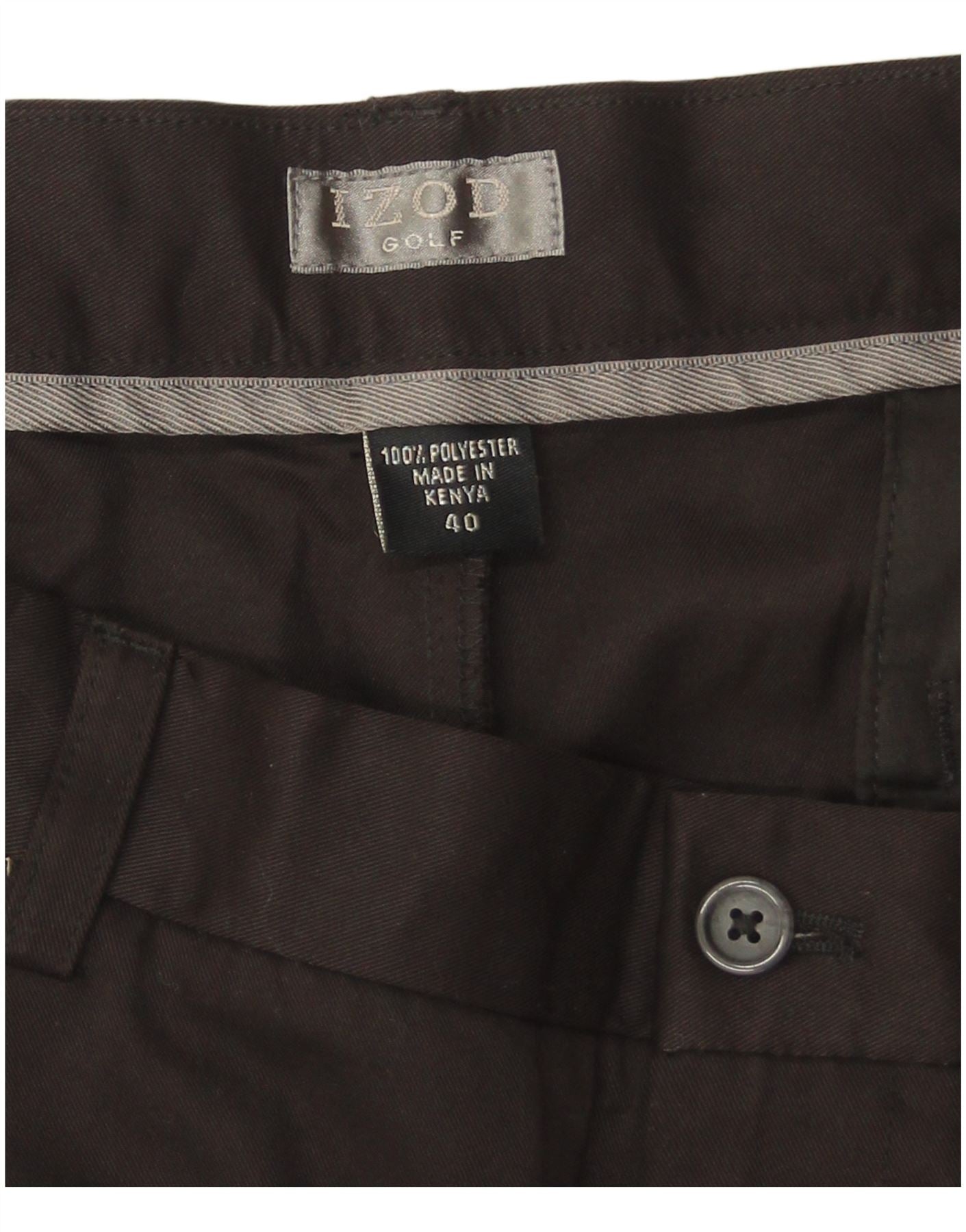 - AI Description: This Izod mens Chino Shorts are crafted from 100 percent woven polyester, offering a smooth, durable finish in a versatile black hue. They feature a regular fit for comfortable wear. The button closure ensures a secure fastening. Pleated detailing adds a classic touch. Practical pockets are included for convenience. Designed for golf, these shorts combine style with functionality.