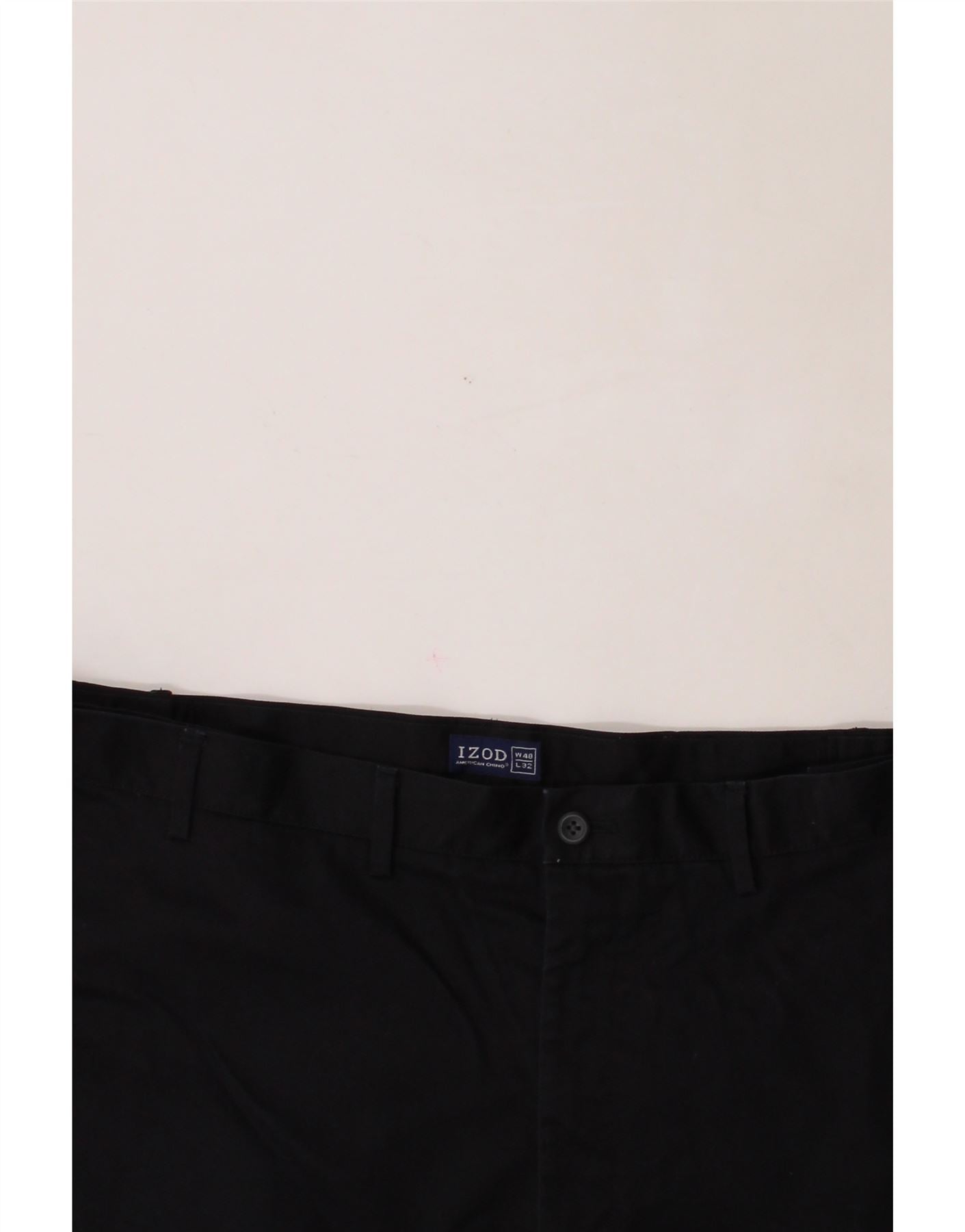 IZOD Mens Straight Chino Trousers W48 L32 Black Cotton